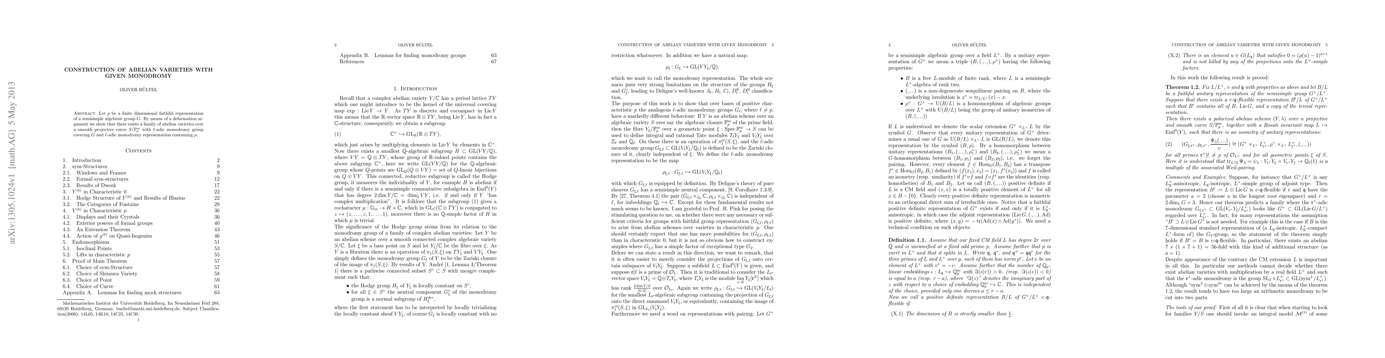 Let $\rho$ be a finite-dimensional faithful representation of a semisimple algebraic group $G$. By means of a deformation argument, we show that there exists a family of Abelian varieties over a smooth and projective curve over the algebraic closure of a prime field of positive characteristic, such that its $\ell$-adic monodromy group covers $G$ and its $\ell$-adic monodromy representation contains $\rho$.