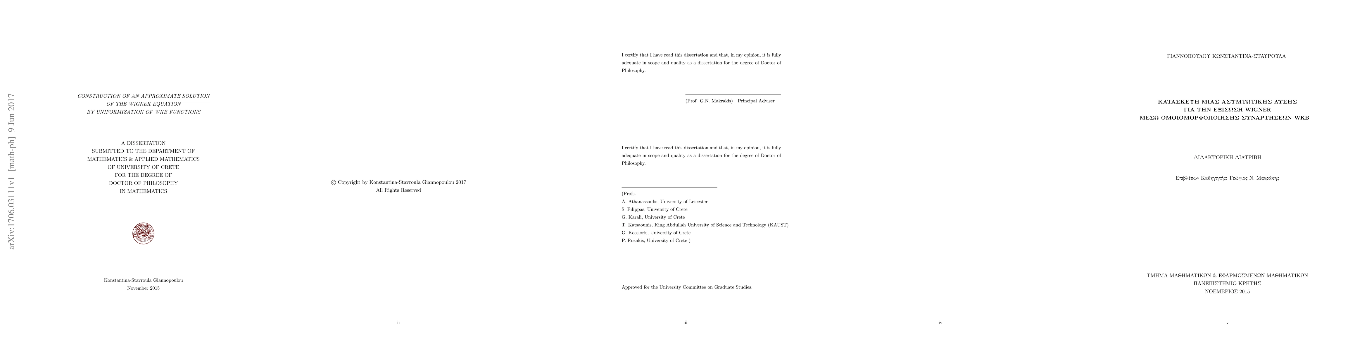 In this thesis, we construct an approximate series solution of the Wigner equation in terms of Airy functions, which are semiclassically concentrated on certain Lagrangian curves in two-dimensional phase space. These curves are defined by the eigenvalues and the Hamiltonian function of the associated one-dimensional Schr\"odinger operator, and they play a crucial role in the quantum interference mechanism in phase space. We assume that the potential of the Schr\"odinger operator is a single potential well, such that the spectrum is discrete. The construction starts from an eigenfunction series expansion of the solution, which is derived here for first time in a systematic way, by combining the elementary technique of separation of variables with involved spectral results for the Moyal star exponential operator. The eigenfunctions of the Wigner equation are the Wigner transforms of the Schr\"odinger eigenfunctions, and they are approximated in terms of Airy functions by a uniform stationary phase approximation of the Wigner transforms of the WKB expansions of the Schr\"odinger eigenfunctions. The approximation of the eigenfunction series is an approximated solution of the Wigner equation, which by projection onto the configuration space provides an approximate wave amplitude, free of turning point singularities. It is generally expected that, the derived wave amplitude is bounded, and correctly scaled, even on caustics, since only finite terms of the approximate terms are significant for WKB initial wave functions with finite energy. The details of the calculations are presented for the simple potential of the harmonic oscillator, in order to be able to check our approximations analytically. But, the same construction can be applied to any potential well, which behaves like the harmonic oscillator near the bottom of the well.
