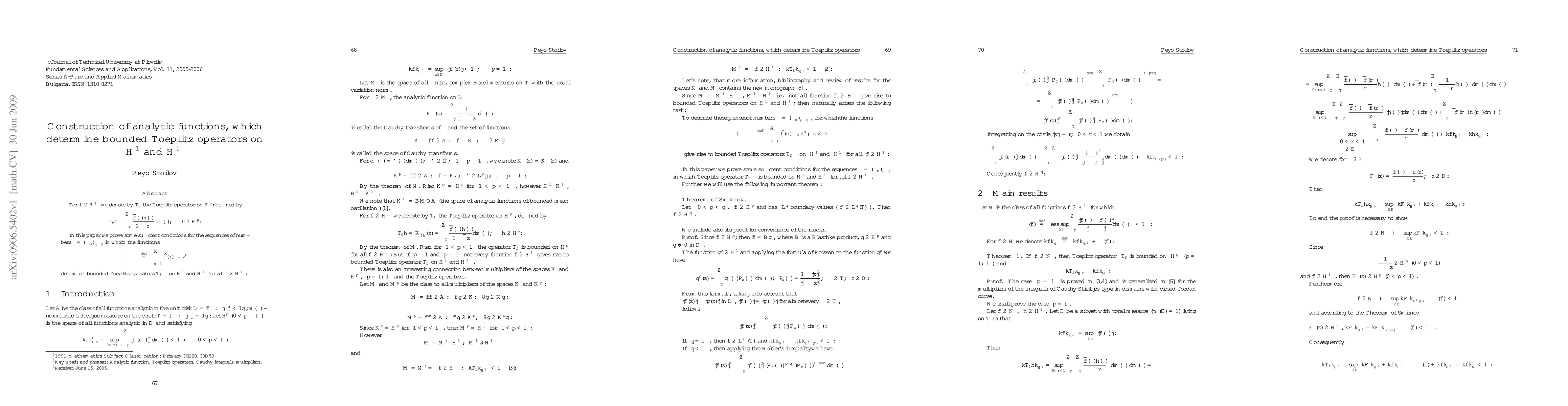 The paper presents a method to construct specific analytic functions that guarantee bounded Toeplitz operators, contributing to operator theory in functional analysis with potential applications in signal processing and mathematical physics.