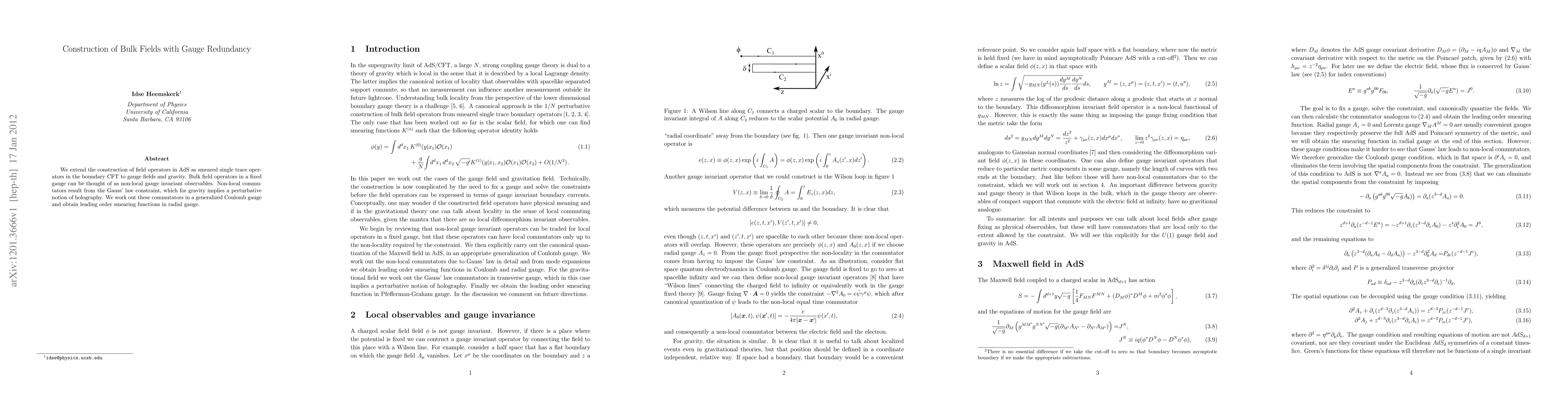 This paper develops the construction of bulk field operators in AdS as smeared single-trace operators in the boundary CFT, applying it to gauge fields and gravity. It identifies non-local commutators arising from Gauss law constraints and works out these commutators in a generalized Coulomb gauge.