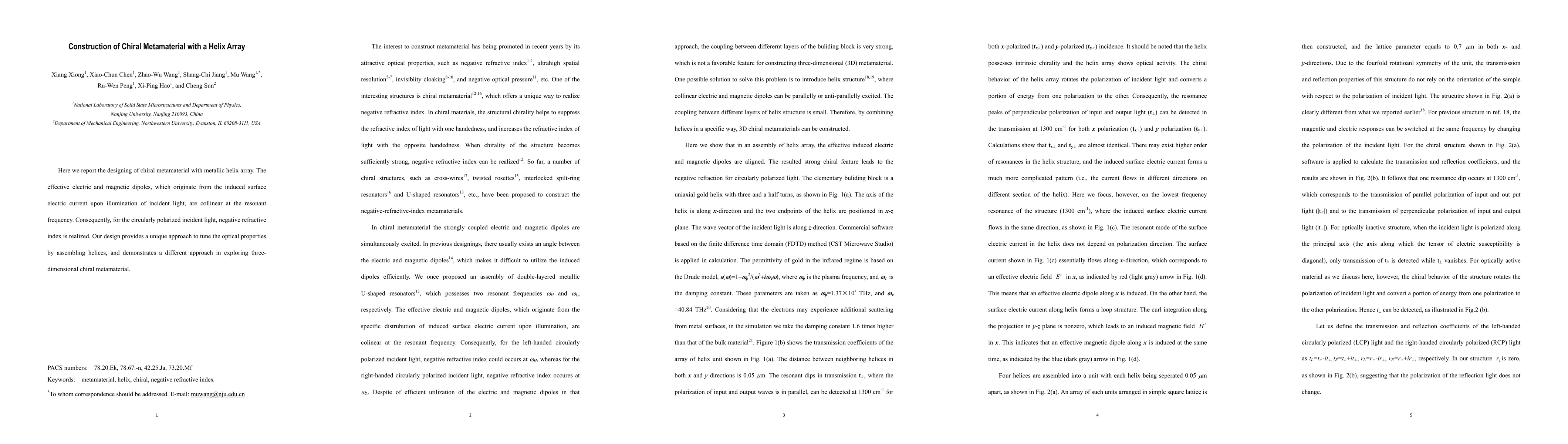 This research designs a chiral metamaterial using a metallic helix array, achieving a negative refractive index for circularly polarized light due to collinear effective electric and magnetic dipoles at resonance. The study presents a novel method to manipulate optical properties via helix assembly.