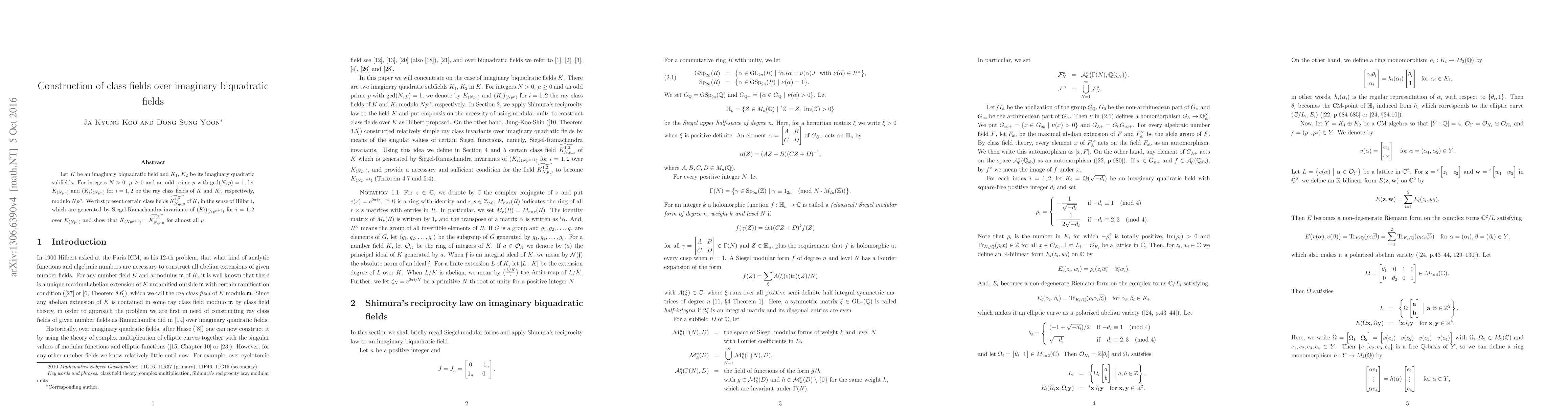 This paper constructs class fields over imaginary biquadratic fields $K$ using ray class fields modulo $Np^\mu$ and demonstrates that certain Hilbert class fields $\widetilde{K_{N,p,\mu}^{1,2}}$ are equivalent to $K_{(Np^{\mu+1})}$ for most values of $\mu$.