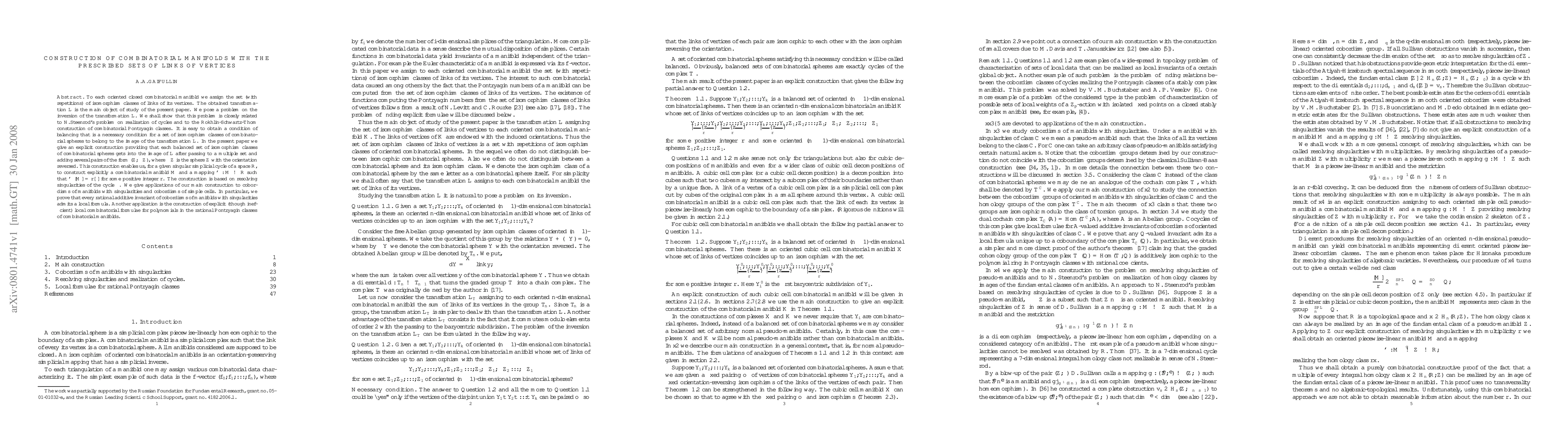 This paper constructs combinatorial manifolds with prescribed vertex link sets, showing that balancing conditions are necessary for the transformation of vertex links. It provides an explicit construction method to realize balanced sets of combinatorial spheres, enabling the construction of manifolds with specified singular simplicial cycles.