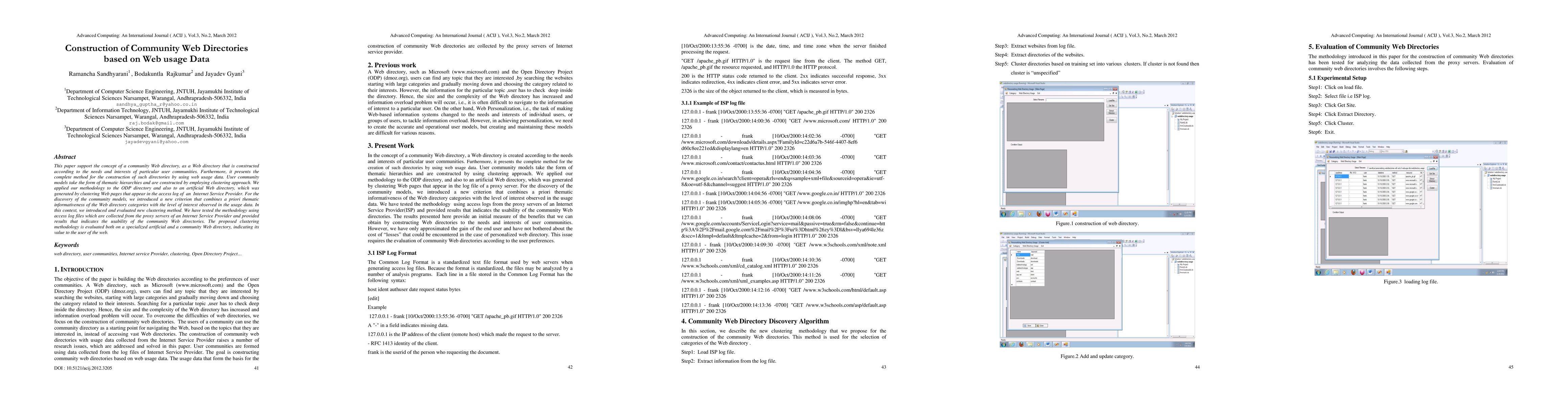 This paper proposes a method for constructing community web directories tailored to specific user interests using web usage data, employing clustering techniques and a new criterion combining thematic informativeness and usage data interest levels. The methodology is tested on both an artificial web directory and the ODP directory, demonstrating its effectiveness.