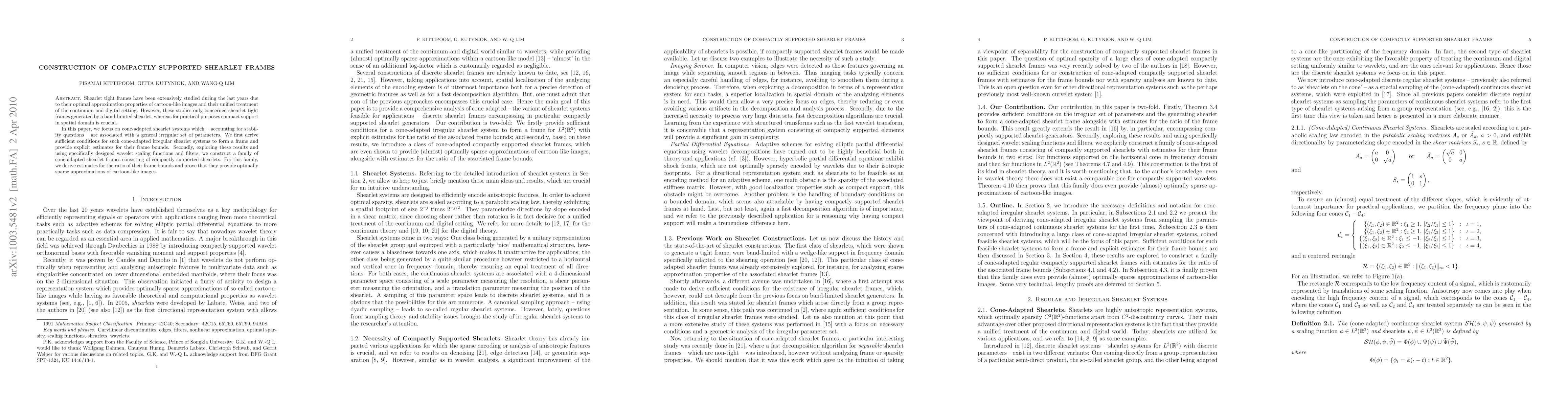 This paper develops compactly supported shearlet frames by deriving conditions for cone-adapted irregular shearlet systems to form a frame and constructing a family of such frames with optimal sparse approximations for cartoon-like images. The study emphasizes the importance of compact support for practical applications.