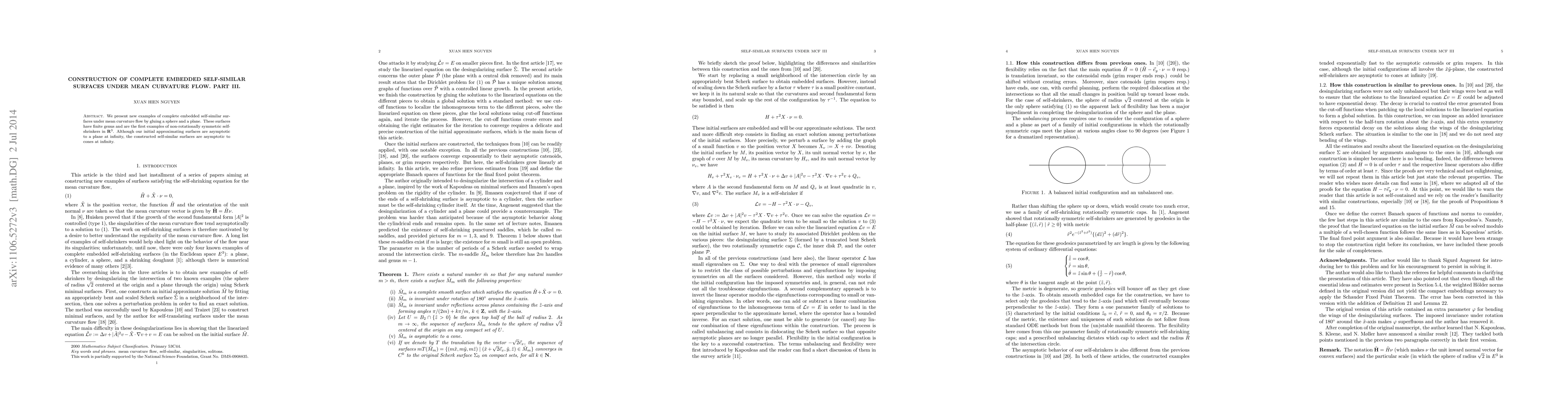 We present new examples of complete embedded self-similar surfaces under mean curvature by gluing a sphere and a plane. These surfaces have finite genus and are the first examples of self-shrinkers in $\mathbb R^3$ that are not rotationally symmetric. The strategy for the construction is to start with a family of initial surfaces by desingularizing the intersection of a sphere and a plane, then solve a perturbation problem to obtain a one parameter family of self-similar surfaces. Although we start with surfaces asymptotic to a plane at infinity, the constructed self-similar surfaces are asymptotic to cones at infinity.