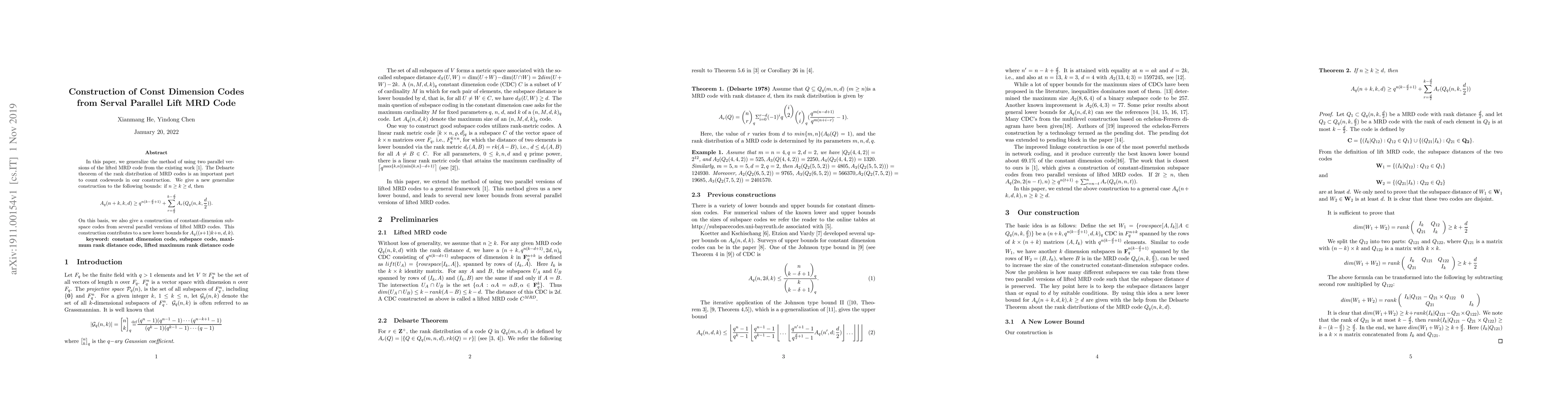 In this paper, we generalize the method of using two parallel versions of the lifted MRD code from the existing work [1]. The Delsarte theorem of the rank distribution of MRD codes is an important part to count codewords in our construction. We give a new generalize construction to the following bounds: if n>=k>=d, then $Aq(n + k,k,d)>=q^{n(k-\frac{d}{2}+1)}+\sum_{r=\frac{d}{2}}^{k-\frac{d}{2}} A_r(Q_q(n,k,\frac{d}{2})).$ On this basis, we also give a construction of constant-dimension subspace codes from several parallel versions of lifted MRD codes. This construction contributes to a new lower bounds for Aq((s+1)k+n,d,k).
