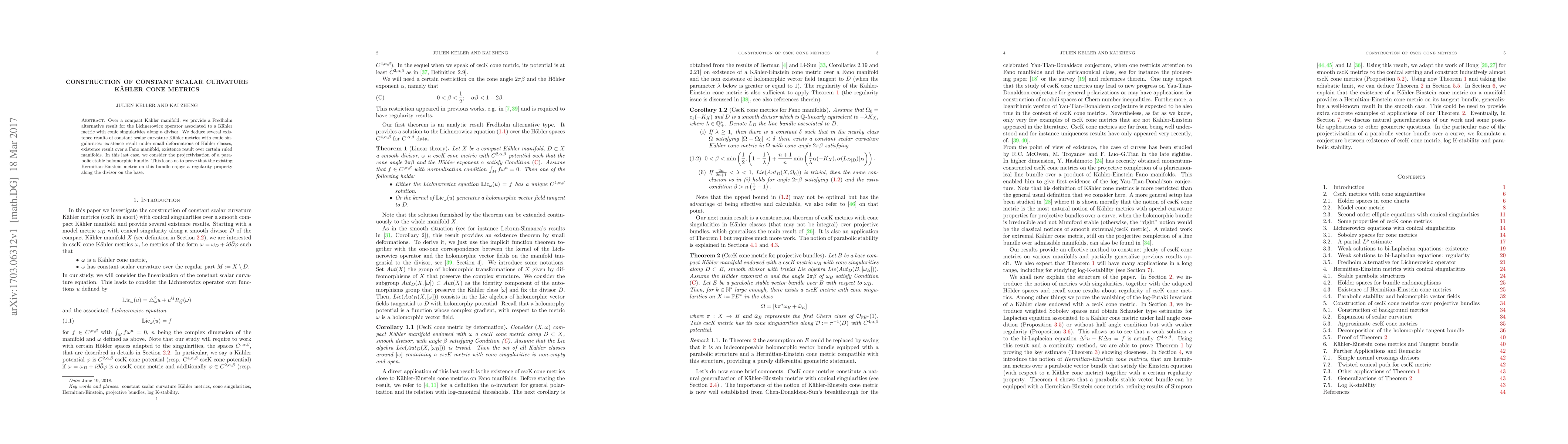 This paper establishes a Fredholm alternative for the Lichnerowicz operator on Kähler manifolds with conic singularities, leading to the existence of constant scalar curvature Kähler metrics under various conditions, including small deformations and over Fano and ruled manifolds. It also proves regularity properties for the Hermitian-Einstein metric on parabolic stable holomorphic bundles.