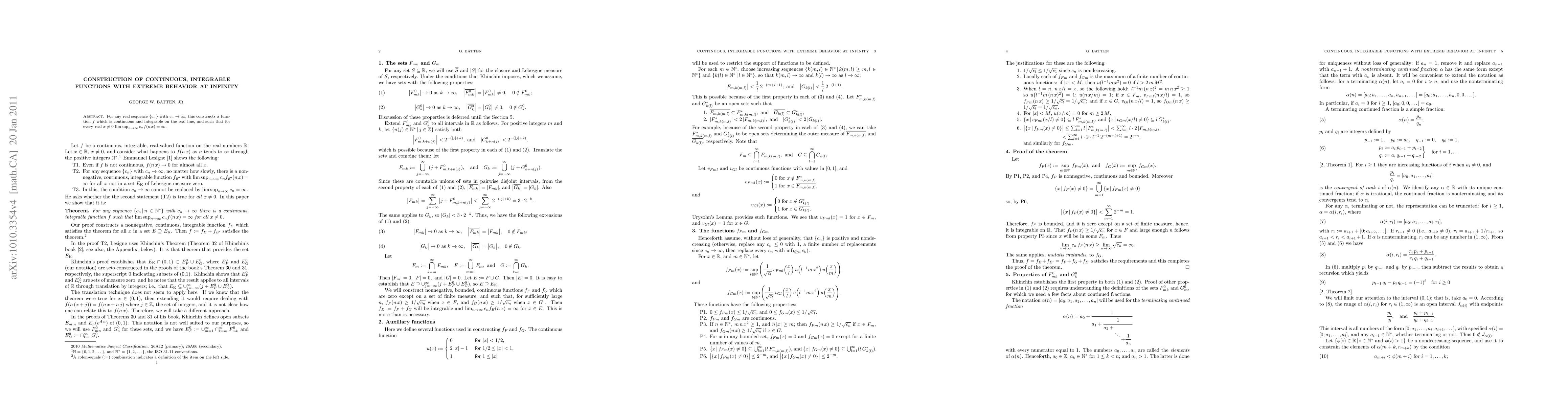 This paper constructs a continuous and integrable function f with extreme behavior at infinity for any real sequence c(n) that tends to infinity.