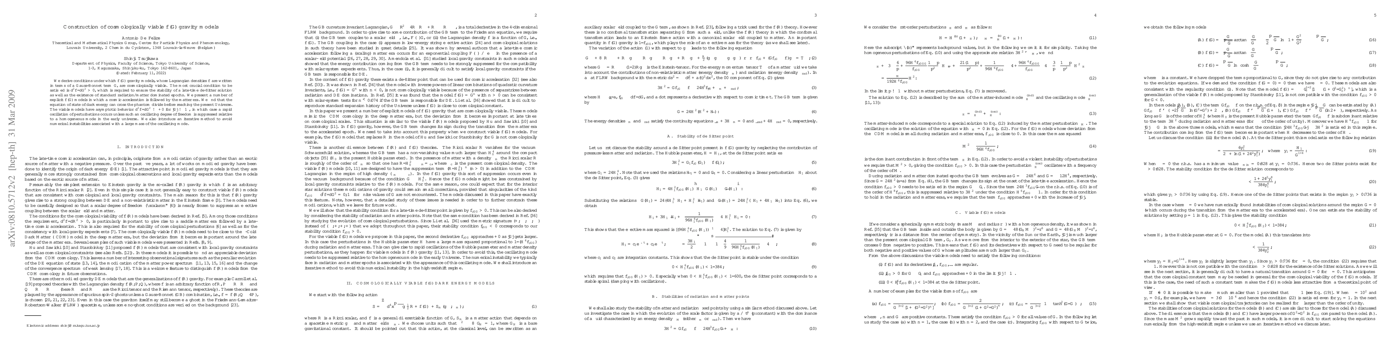 This paper derives conditions for f(G) gravity models to be cosmologically viable, emphasizing the necessity of a positive second derivative of f with respect to G for stability. It presents models where cosmic acceleration leads to a matter era, with dark energy potentially crossing the phantom divide.