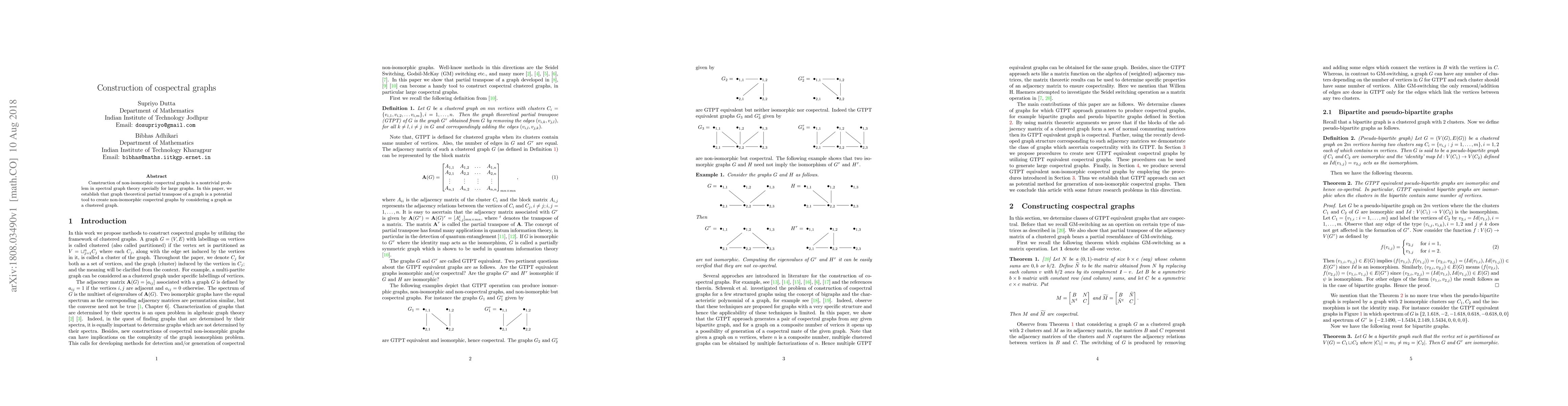 This paper demonstrates that graph theoretical partial transpose can generate non-isomorphic cospectral graphs, providing a useful tool for spectral graph theory, especially for constructing such graphs in large clustered graph settings.