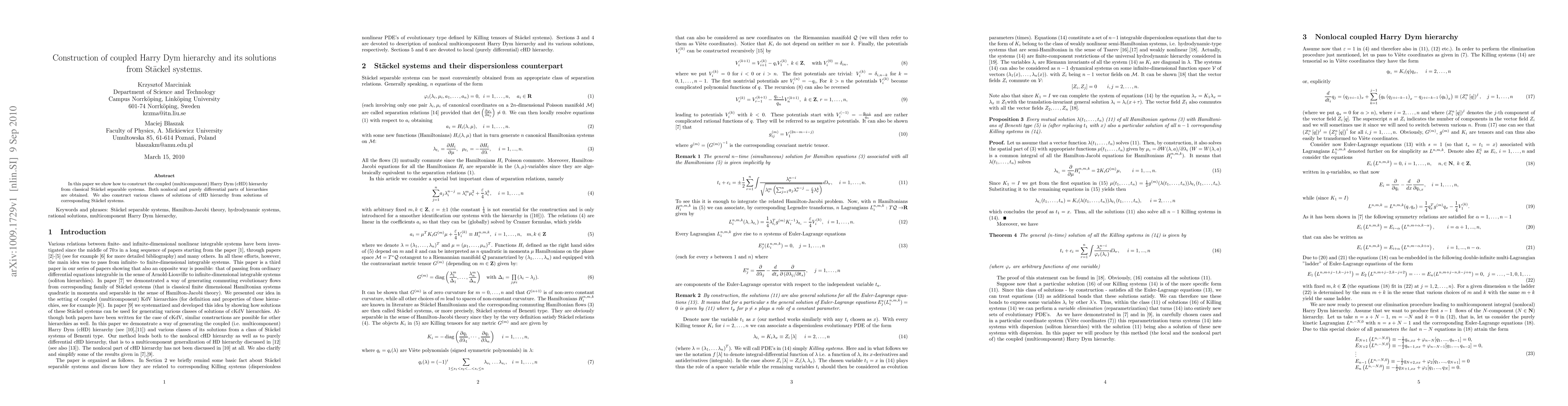 In this paper we show how to construct the coupled (multicomponent) Harry Dym (cHD) hierarchy from classical St\"ackel separable systems. Both nonlocal and purely differential parts of hierarchies are obtained. We also construct various classes of solutions of cHD hierarchy from solutions of corresponding St\"ackel systems.