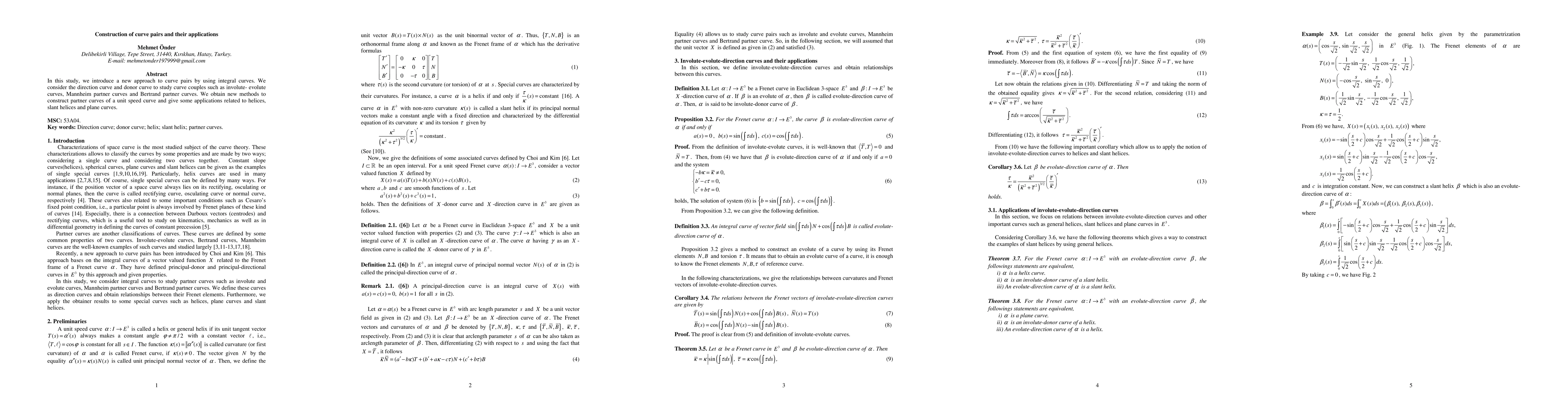 In this study, we introduce a new approach to curve pairs by using integral curves. We consider the direction curve and donor curve to study curve couples such as involute-evolute curves, Mannheim partner curves and Bertrand partner curves. We obtain new methods to construct partner curves of a unit speed curve and give some applications related to helices, slant helices and plane curves.