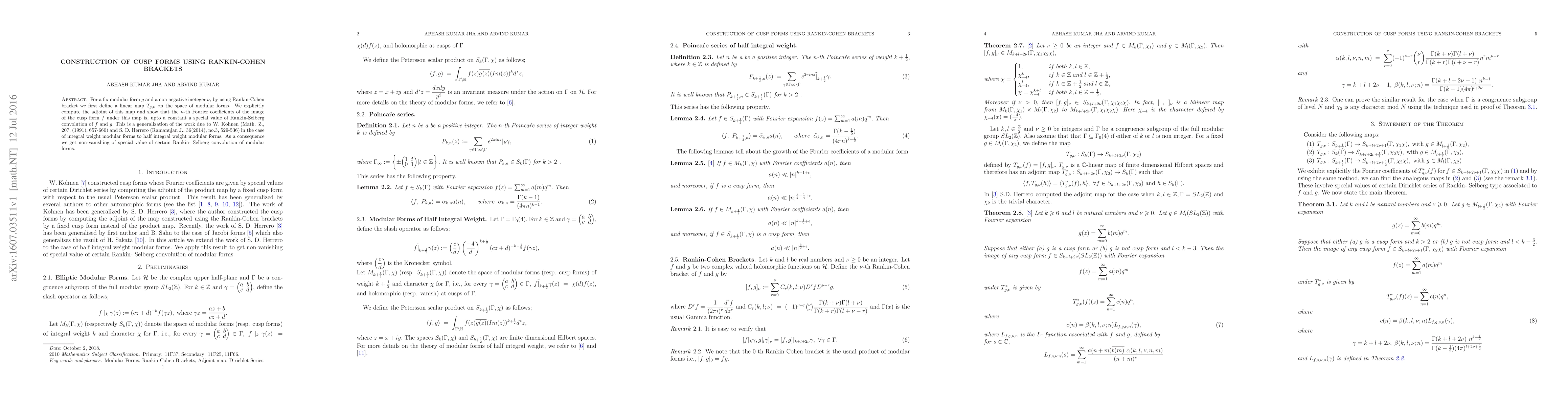 Researchers developed a method to compute cusp forms using Rankin-Cohen brackets, showing that their n-th Fourier coefficients are related to a special value of Rankin-Selberg convolution.