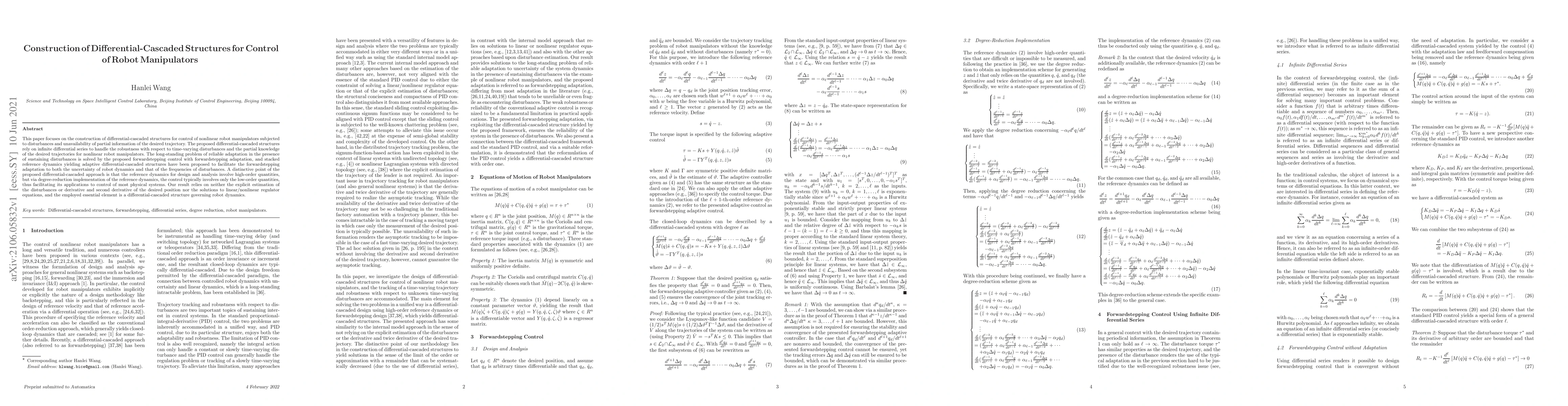 This paper proposes differential-cascaded structures for controlling nonlinear robot manipulators under disturbances and partial trajectory information, utilizing infinite differential series for robustness. The approach leverages forwardstepping control with adaptation to manage uncertainties and disturbances, simplifying high-order dynamics into low-order control implementations.