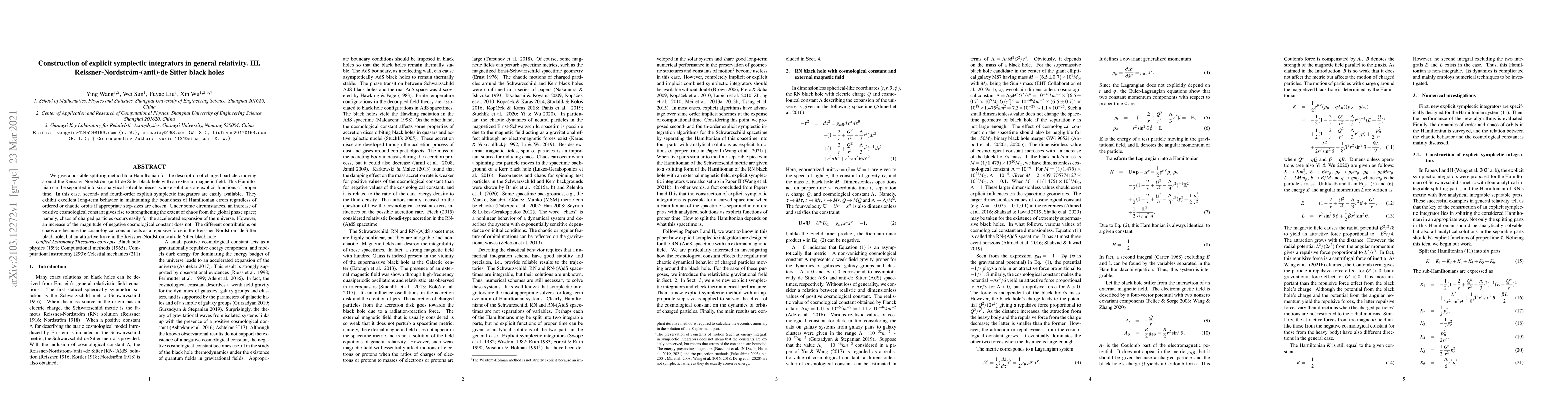 This paper proposes a splitting method for a Hamiltonian to describe charged particles around Reissner-Nordstrom-(anti)-de Sitter black holes, offering second- and fourth-order symplectic integrators with stable long-term behavior. The effect of cosmological constants on chaos varies, with positive constants enhancing chaos due to repulsive forces in de Sitter cases and negative constants having no such effect.