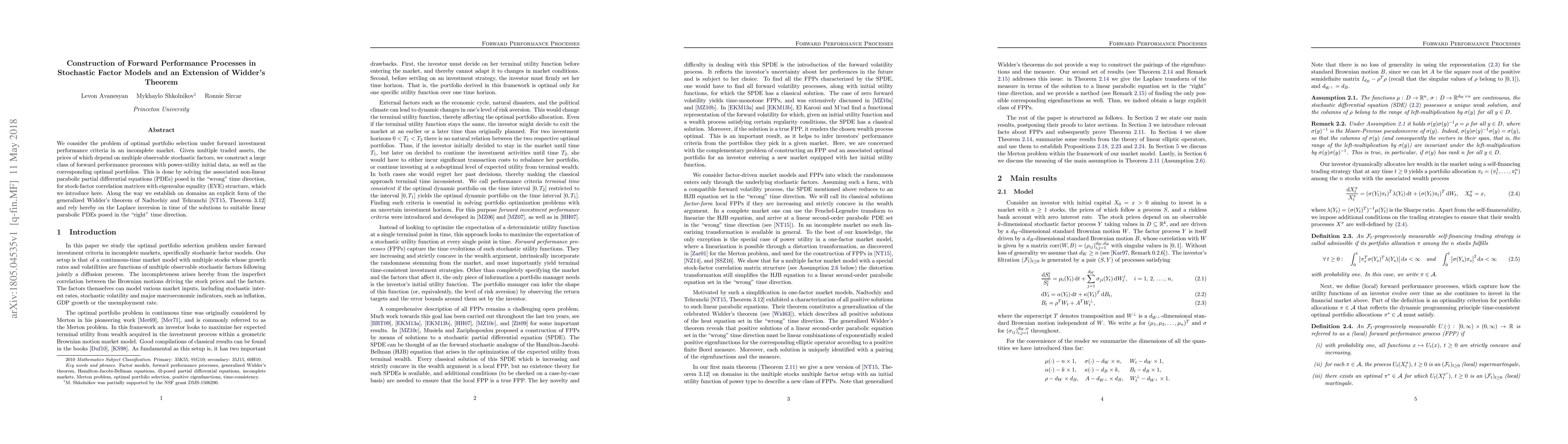 This paper constructs forward performance processes for optimal portfolio selection under forward investment criteria in an incomplete market, using a class of power-utility initial data. It extends Widder's theorem by establishing an explicit form on domains, relying on the Laplace inversion of solutions to linear parabolic PDEs.