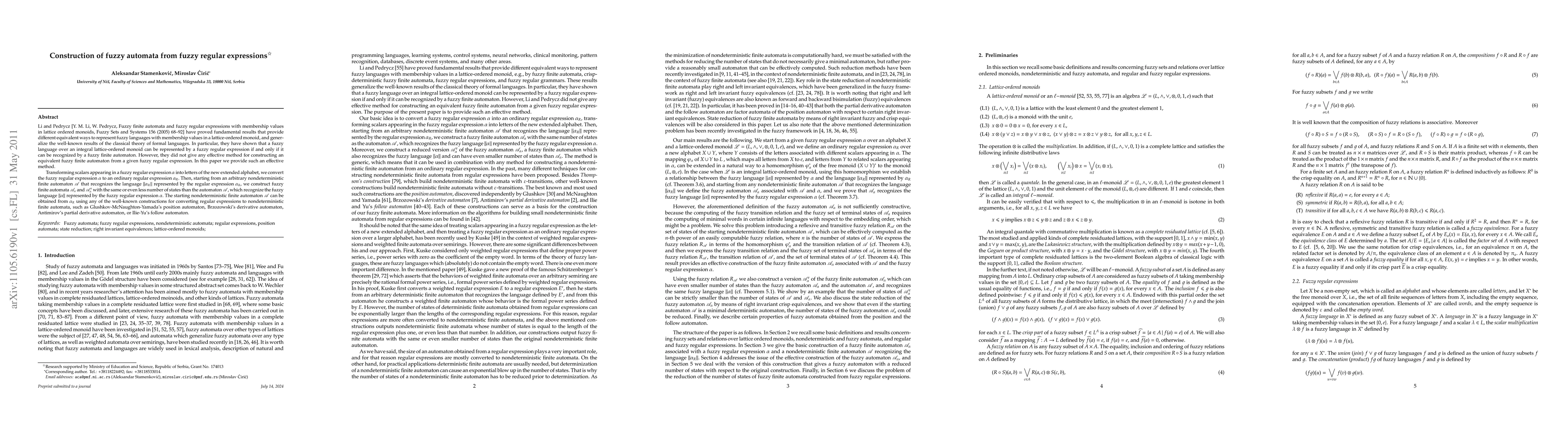 This paper presents an effective method to construct fuzzy finite automata from fuzzy regular expressions. It converts scalars in the fuzzy regular expression into an extended alphabet, transforming it into an ordinary regular expression, and then builds fuzzy finite automata recognizing the fuzzy language from the nondeterministic finite automaton recognizing the corresponding ordinary language.