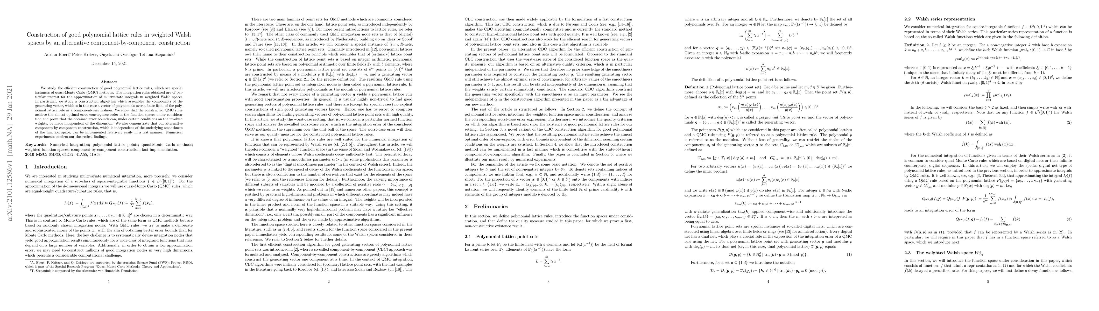 This paper presents an efficient construction of polynomial lattice rules for approximating multivariate integrals in weighted Walsh spaces, focusing on an alternative component-by-component method. The proposed rules achieve near-optimal error convergence and can be implemented quickly, with numerical experiments validating the theoretical results.