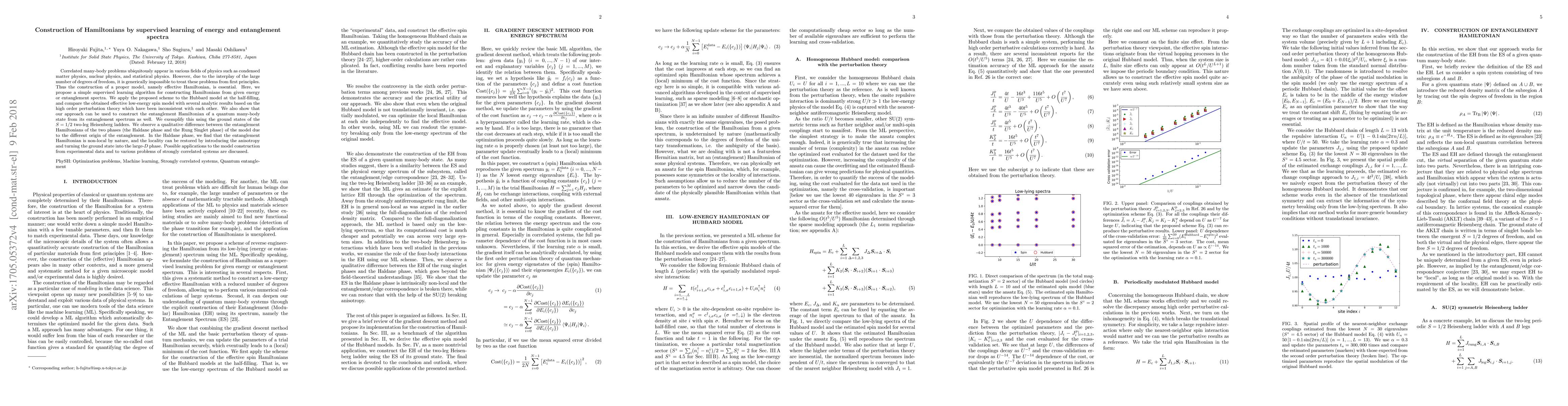 Correlated many-body problems ubiquitously appear in various fields of physics such as condensed matter physics, nuclear physics, and statistical physics. However, due to the interplay of the large number of degrees of freedom, it is generically impossible to treat these problems from first principles. Thus the construction of a proper model, namely effective Hamiltonian, is essential. Here, we propose a simple scheme of constructing Hamiltonians from given energy or entanglement spectra with machine learning. We apply the proposed scheme to the Hubbard model at the half-filling, and compare the obtained effective low-energy spin-1/2 model with several analytic results based on the high order perturbation theory which have been inconsistent with each other. We also show that our approach can be used to construct the entanglement Hamiltonian of a quantum many-body state from its entanglement spectrum as well. We exemplify this using the ground states of the $S=1/2$ two-leg Heisenberg ladders. We observe a qualitative difference between the entanglement Hamiltonians of the two phases (the Haldane phase and the Rung Singlet phase) of the model due to the different origin of the entanglement. In the Haldane phase, we find that the entanglement Hamiltonian is non-local by nature, and the locality can be restored by introducing the anisotropy and turning the system into the large-$D$ phase. Possible applications to the study of strongly-correlated systems and the model construction from experimental data are discussed.