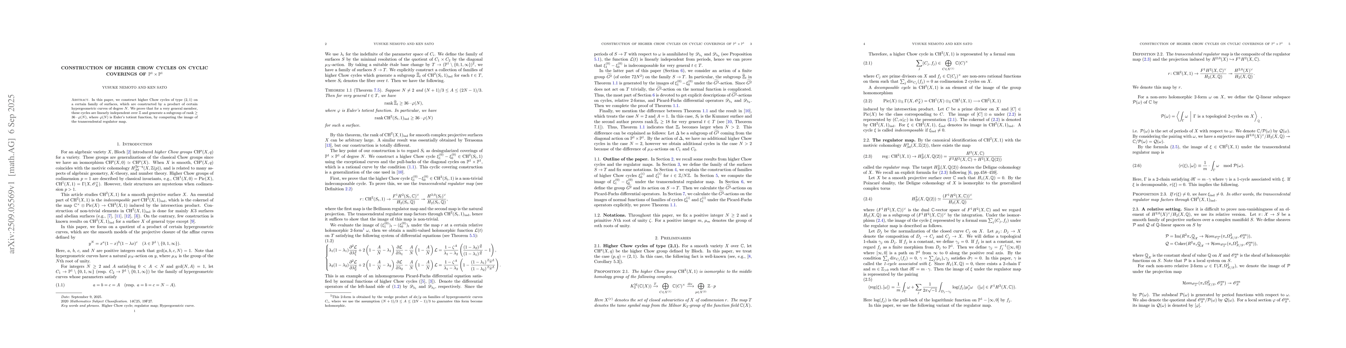 In this paper, we construct higher Chow cycles of type $(2, 1)$ on a certain family of surfaces, which are constructed by a product of certain hypergeometric curves of degree $N$. We prove that for a very general member, these cycles are linearly independent over $\mathbb{Z}$ and generate a subgroup of $\operatorname{rank} \ge 36 \cdot \varphi(N)$, where $\varphi(N)$ is Euler's totient function, by computing the image of the transcendental regulator map.