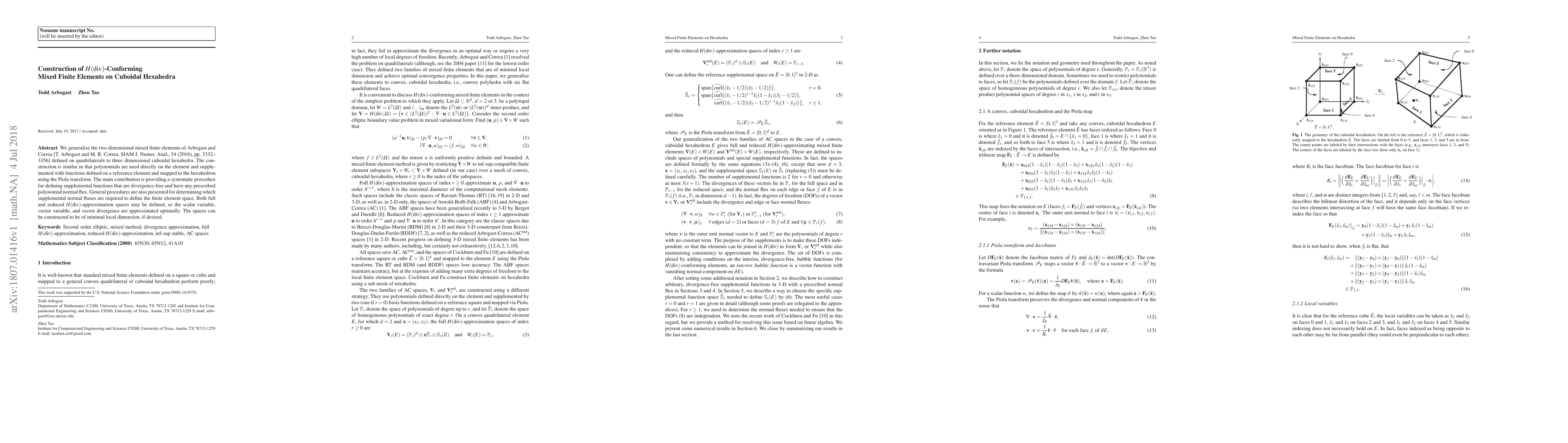 We generalize the two dimensional mixed finite elements of Arbogast and Correa [T. Arbogast and M. R. Correa, SIAM J. Numer. Anal., 54 (2016), pp. 3332--3356] defined on quadrilaterals to three dimensional cuboidal hexahedra. The construction is similar in that polynomials are used directly on the element and supplemented with functions defined on a reference element and mapped to the hexahedron using the Piola transform. The main contribution is providing a systematic procedure for defining supplemental functions that are divergence-free and have any prescribed polynomial normal flux. General procedures are also presented for determining which supplemental normal fluxes are required to define the finite element space. Both full and reduced $H(\rm{div})$-approximation spaces may be defined, so the scalar variable, vector variable, and vector divergence are approximated optimally. The spaces can be constructed to be of minimal local dimension, if desired.