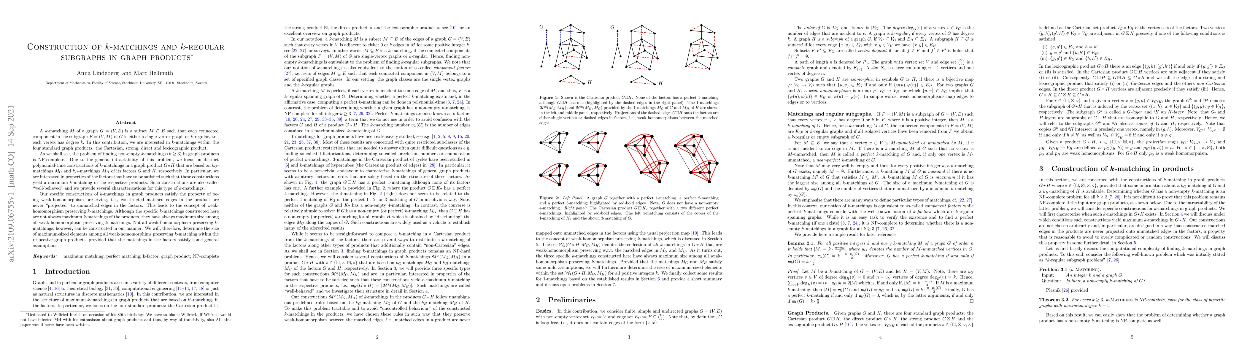 A $k$-matching $M$ of a graph $G=(V,E)$ is a subset $M\subseteq E$ such that each connected component in the subgraph $F = (V,M)$ of $G$ is either a single-vertex graph or $k$-regular, i.e., each vertex has degree $k$. In this contribution, we are interested in $k$-matchings within the four standard graph products: the Cartesian, strong, direct and lexicographic product. As we shall see, the problem of finding non-empty $k$-matchings ($k\geq 3$) in graph products is NP-complete. Due to the general intractability of this problem, we focus on distinct polynomial-time constructions of $k$-matchings in a graph product $G\star H$ that are based on $k_G$-matchings $M_G$ and $k_H$-matchings $M_H$ of its factors $G$ and $H$, respectively. In particular, we are interested in properties of the factors that have to be satisfied such that these constructions yield a maximum $k$-matching in the respective products. Such constructions are also called "well-behaved" and we provide several characterizations for this type of $k$-matchings. Our specific constructions of $k$-matchings in graph products satisfy the property of being weak-homomorphism preserving, i.e., constructed matched edges in the product are never "projected" to unmatched edges in the factors. This leads to the concept of weak-homomorphism preserving $k$-matchings. Although the specific $k$-matchings constructed here are not always maximum $k$-matchings of the products, they have always maximum size among all weak-homomorphism preserving $k$-matchings. Not all weak-homomorphism preserving $k$-matchings, however, can be constructed in our manner. We will, therefore, determine the size of maximum-sized elements among all weak-homomorphims preserving $k$-matching within the respective graph products, provided that the matchings in the factors satisfy some general assumptions.