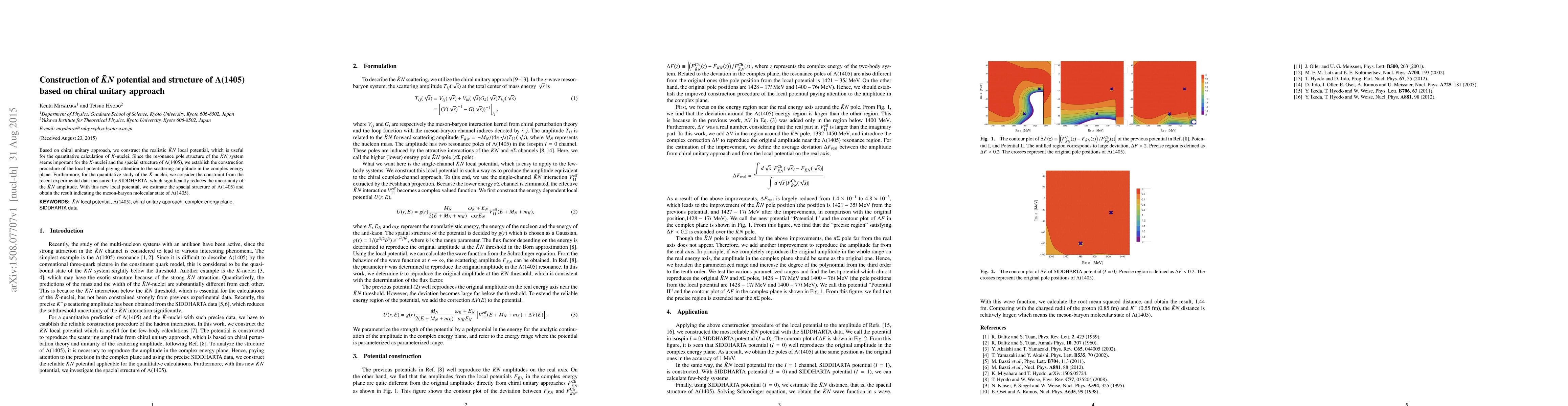 Researchers created a local potential for KbarN interactions based on a chiral unitary approach, which helps calculate Kbar-nuclei with reduced uncertainty. Their new potential suggests Lambda(1405) is in a meson-baryon molecular state.