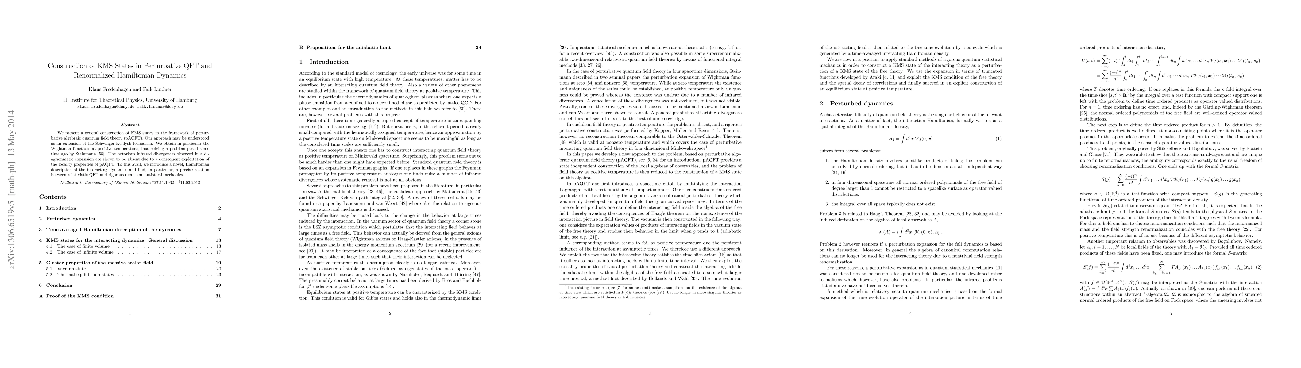We present a general construction of KMS states in the framework of perturbative algebraic quantum field theory (pAQFT). Our approach may be understood as an extension of the Schwinger-Keldysh formalism. We obtain in particular the Wightman functions at positive temperature, thus solving a problem posed some time ago by Steinmann. The notorious infrared divergences observed in a diagrammatic expansion are shown to be absent due to a consequent exploitation of the locality properties of pAQFT. To this avail, we introduce a novel, Hamiltonian description of the interacting dynamics and find, in particular, a precise relation between relativistic QFT and rigorous quantum statistical mechanics.