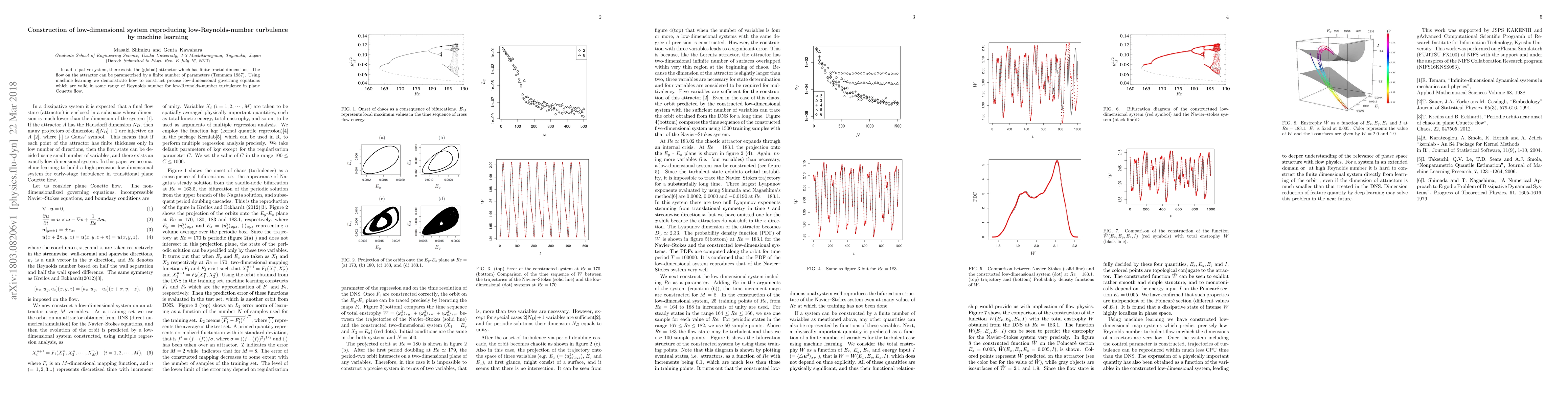 In a dissipative system, there exists the (global) attractor which has finite fractal dimensions. The flow on the attractor can be parametrized by a finite number of parameters (Temmam 1987). Using machine learning we demonstrate how to construct precise low-dimensional governing equations which are valid in some range of Reynolds number for low-Reynolds-number turbulence in plane Couette flow.