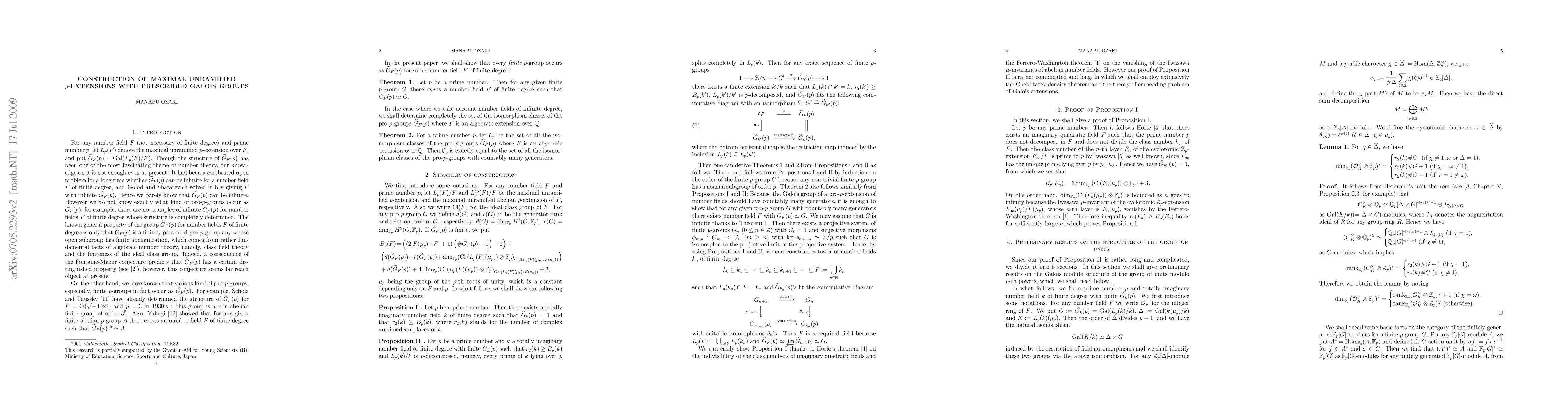 In the present paper, we shall show that for any prime number p, every finite p-group occurs as the Galois Group of the maximal unramified p-extension over a certain number field of finite degree. We shall also show that for any given pro-p-group G with countably many generators, there exists a number field (not necessary of finite degree) whose maximal unramified p-extension has Galois group isomorphic to G. This means that the set of the isomorphism classes of the Galois groups of the maximal unramified p-extensions over the number fields (including of infinite degree) is precisely equal to that of all the pro-p-groups with countably many generators.