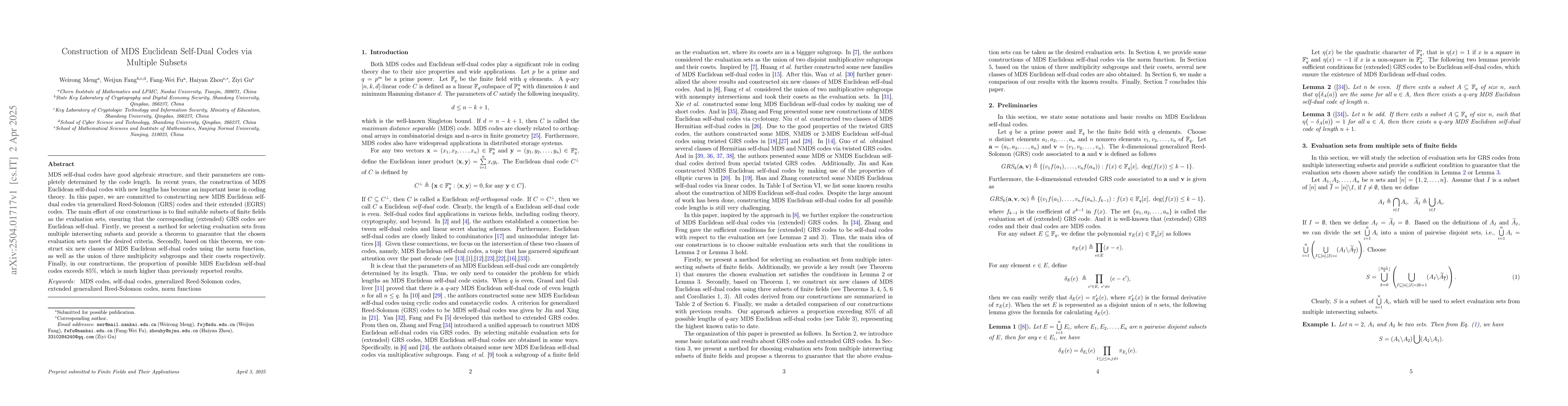 The research constructs new MDS Euclidean self-dual codes via generalized Reed-Solomon (GRS) codes and their extended (EGRS) codes, focusing on selecting suitable subsets of finite fields as evaluation sets.