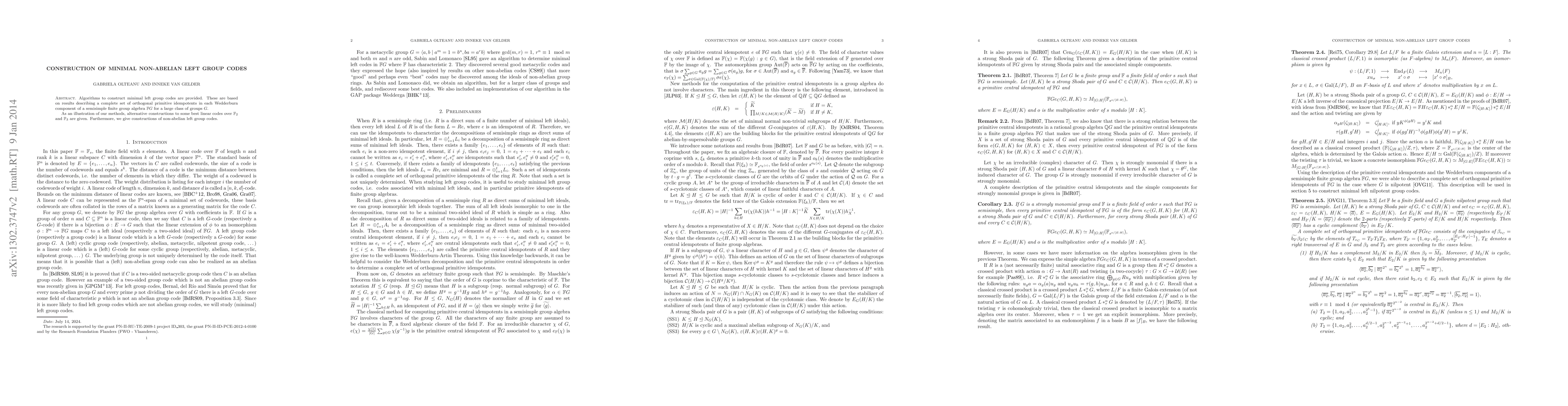 Research provides algorithms to construct minimal left group codes based on orthogonal primitive idempotents in semisimple finite group algebras, offering an alternative for best linear codes over F_2 and F_3.