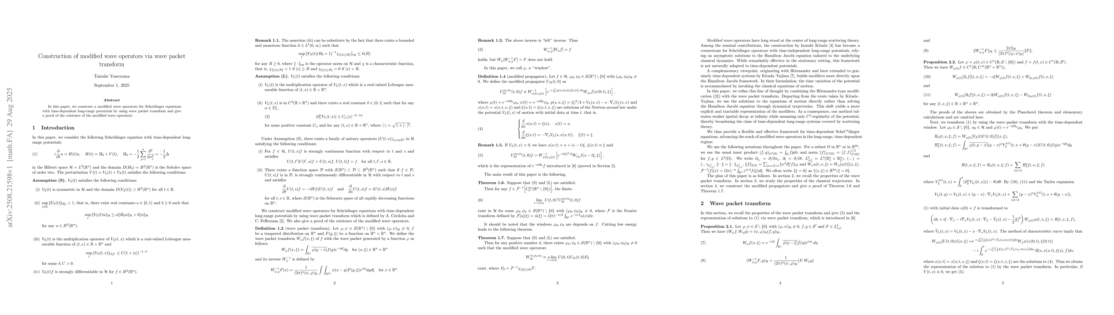 In this paper, we construct a modified wave operators for Schrodinger equations with time-dependent long-range potentials by using wave packet transform and give a proof of the existence of the modified wave operators.