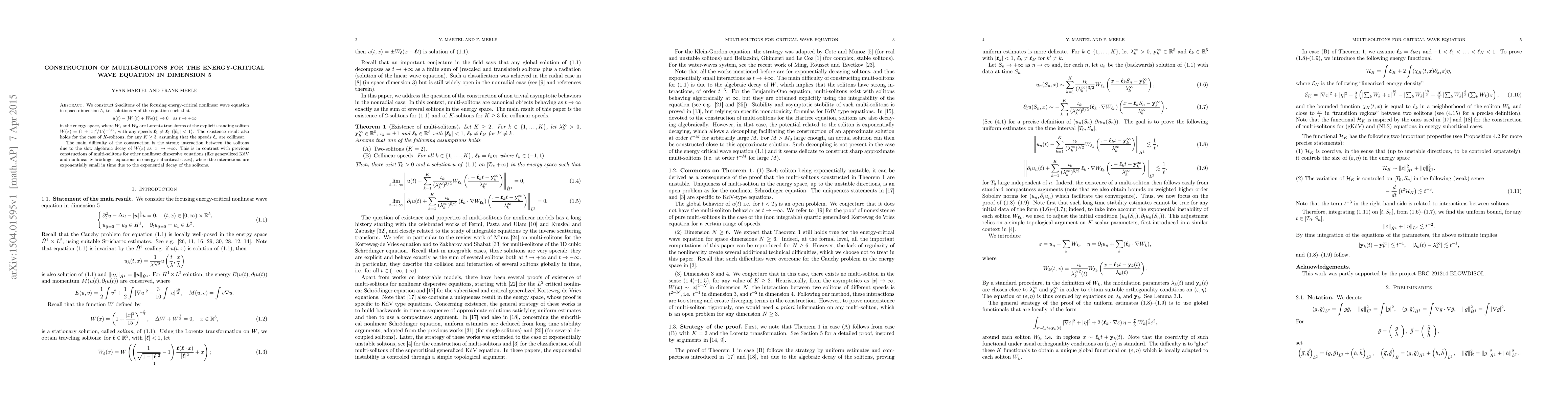 This paper constructs 2-solitons and K-solitons (for K > 2, collinear speeds) of the focusing energy-critical nonlinear wave equation in dimension 5. The challenge lies in the strong interaction between solitons due to the slow spatial decay of individual solitons, contrasting with exponentially small interactions in other subcritical models.