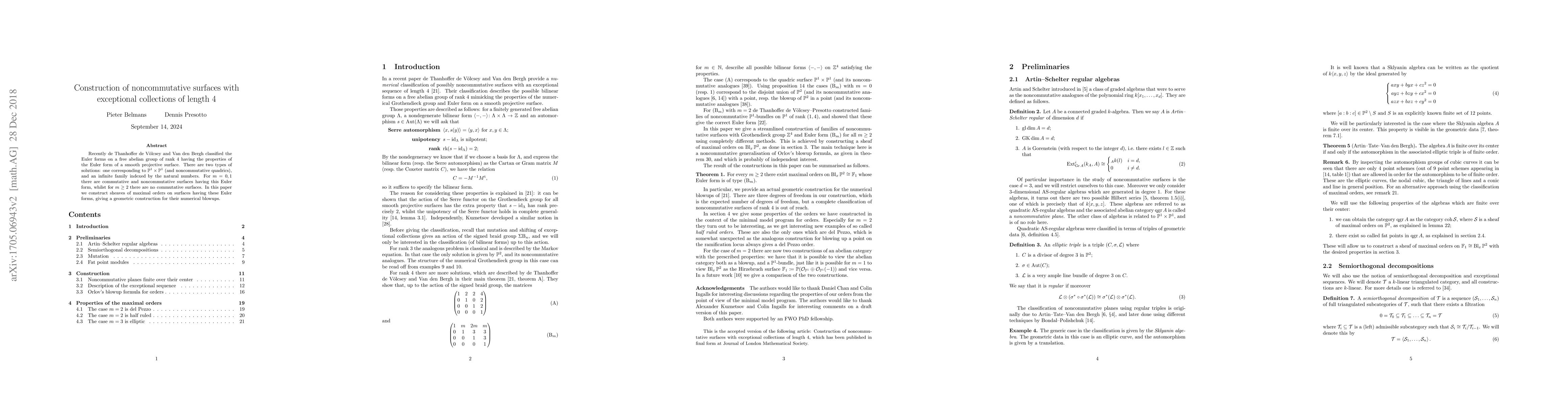 Recently de Thanhoffer de V\"olcsey and Van den Bergh classified the Euler forms on a free abelian group of rank 4 having the properties of the Euler form of a smooth projective surface. There are two types of solutions: one corresponding to $\mathbb{P}^1\times\mathbb{P}^1$ (and noncommutative quadrics), and an infinite family indexed by the natural numbers. For $m=0,1$ there are commutative and noncommutative surfaces having this Euler form, whilst for $m\geq 2$ there are no commutative surfaces. In this paper we construct sheaves of maximal orders on surfaces having these Euler forms, giving a geometric construction for their numerical blowups.