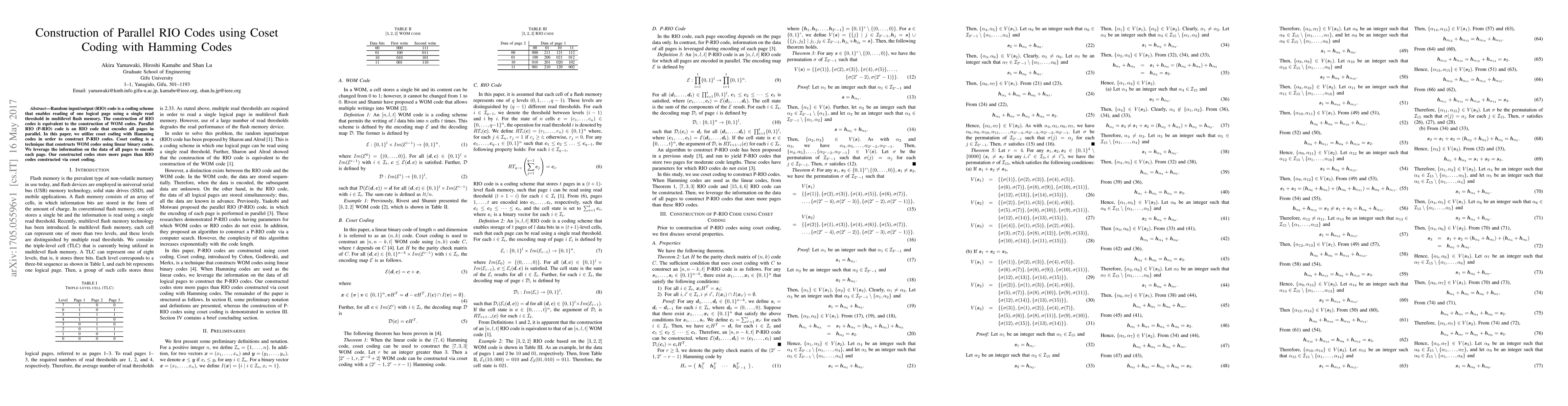 Random input/output (RIO) code is a coding scheme that enables reading of one logical page using a single read threshold in multilevel flash memory. The construction of RIO codes is equivalent to the construction of WOM codes. Parallel RIO (P-RIO) code is an RIO code that encodes all pages in parallel. In this paper, we utilize coset coding with Hamming codes in order to construct P-RIO codes. Coset coding is a technique that constructs WOM codes using linear binary codes. We leverage the information on the data of all pages to encode each page. Our constructed codes store more pages than RIO codes constructed via coset coding.