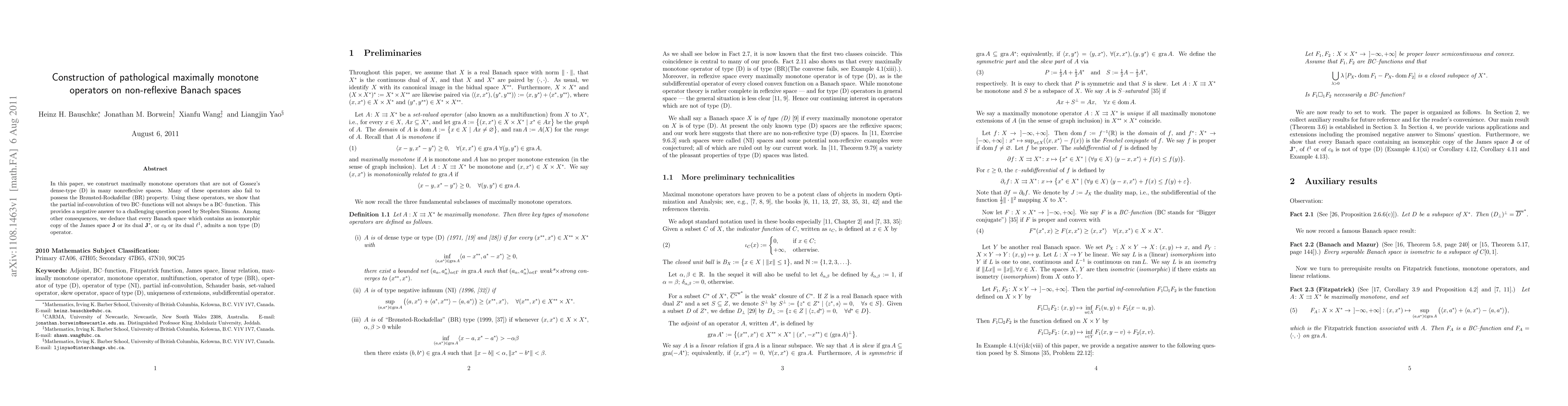 This paper constructs maximally monotone operators on non-reflexive Banach spaces that do not conform to Gossez's dense-type (D) or the Br{\o}nsted-Rockafellar (BR) property, demonstrating that the partial inf-convolution of two BC-functions may not be a BC-function, thus answering a question posed by Stephen Simons negatively.