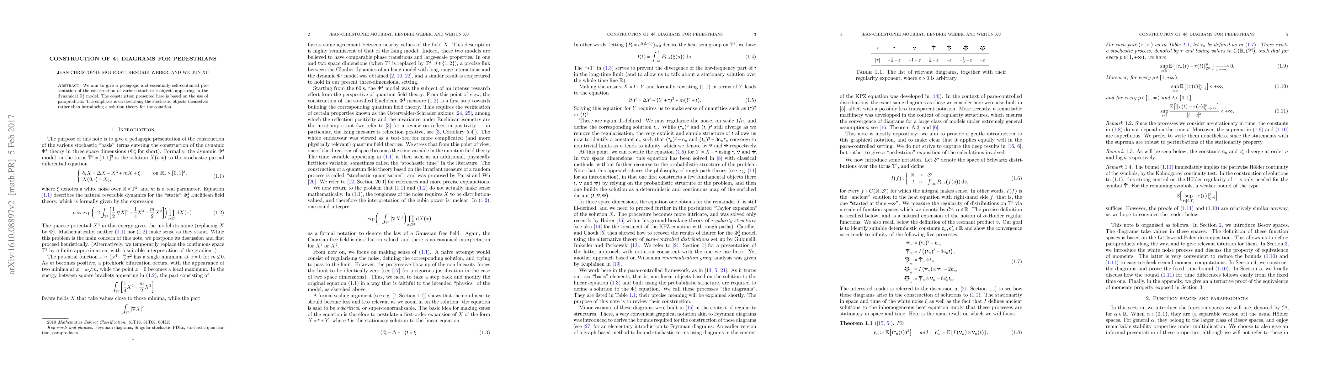 This paper presents a pedagogical approach to constructing $ ho^4_3$ diagrams for pedestrians in the dynamical $ ho^4_3$ model using paraproducts. The focus is on describing stochastic objects rather than solving the equation, aiming to provide a self-contained presentation.