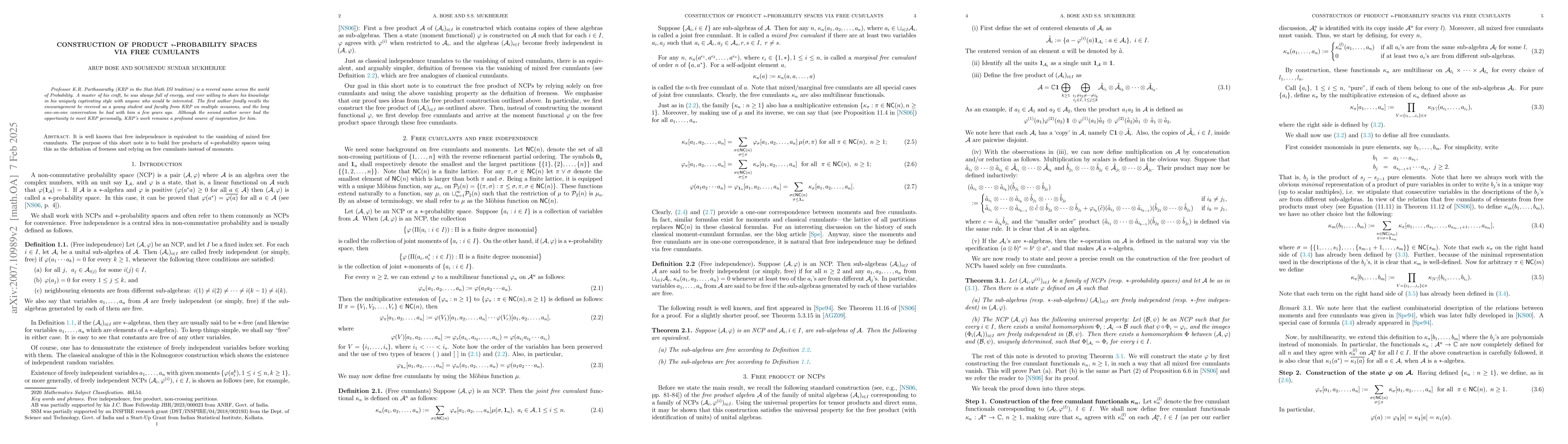 Researchers created a method to build free products of *-probability spaces using free cumulants as a definition of freeness, providing an alternative approach to classical methods.