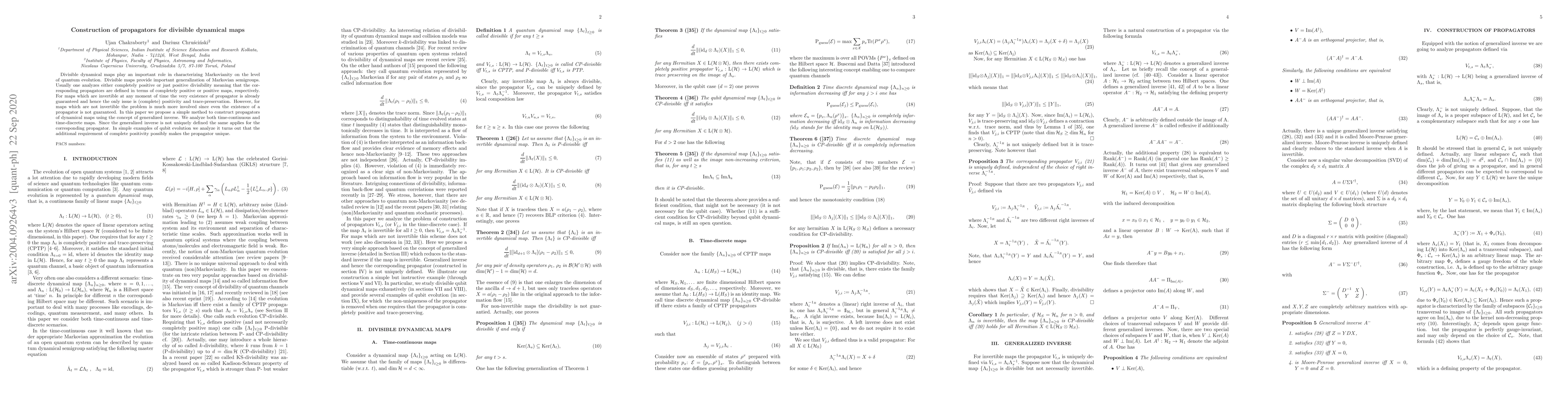This paper proposes a method to construct propagators for divisible dynamical maps using generalized inverses, addressing the challenge of non-invertible maps. It explores both continuous and discrete time scenarios, highlighting that the uniqueness of the propagator depends on the additional requirement of complete positivity.