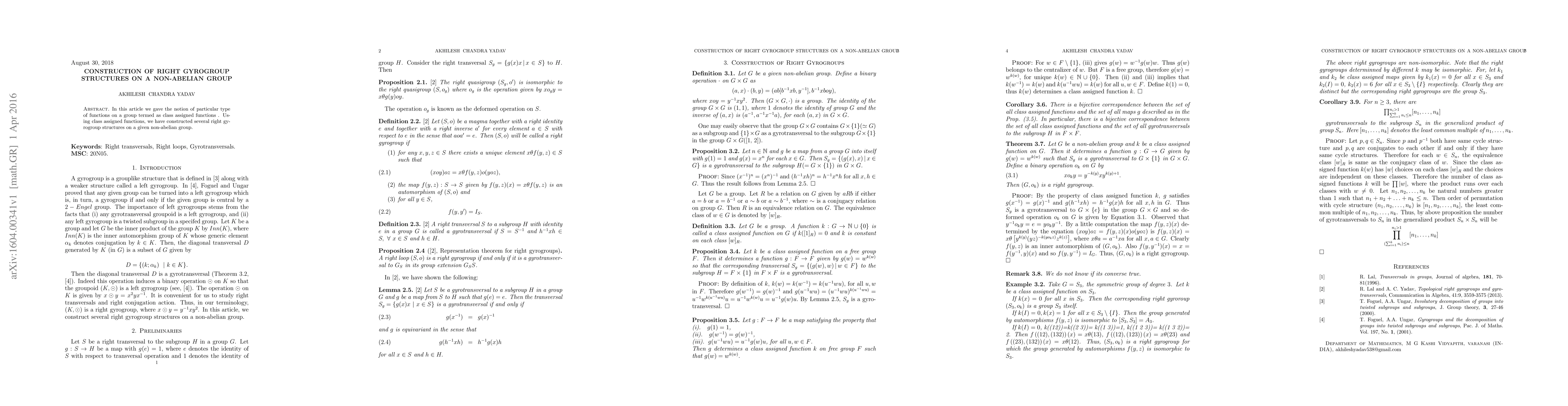 In this article we gave the notion of particular type of functions on a group termed as class assigned functions . Using class assigned functions, we have constructed several right gyrogroup structures on a given non-abelian group.