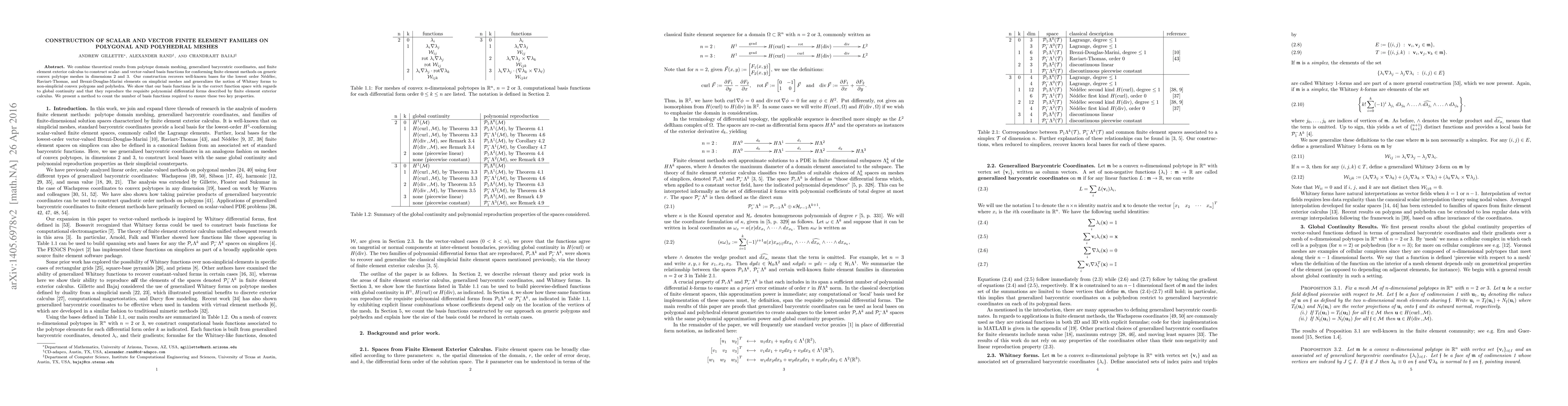 Researchers develop a method to construct scalar and vector finite element basis functions on generic convex polytope meshes in dimensions 2 and 3, generalizing existing methods for simplicial meshes and recovering well-known bases.