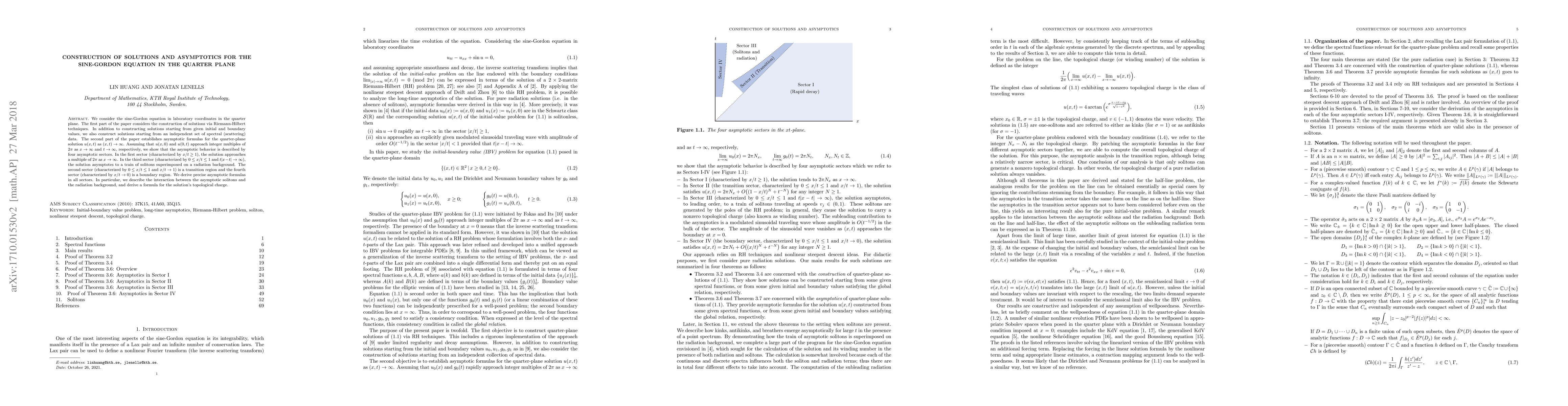 This paper constructs solutions to the sine-Gordon equation in the quarter plane using Riemann-Hilbert techniques and analyzes their asymptotic behavior, revealing four distinct sectors with specific limiting forms, including soliton interactions and a radiation background.
