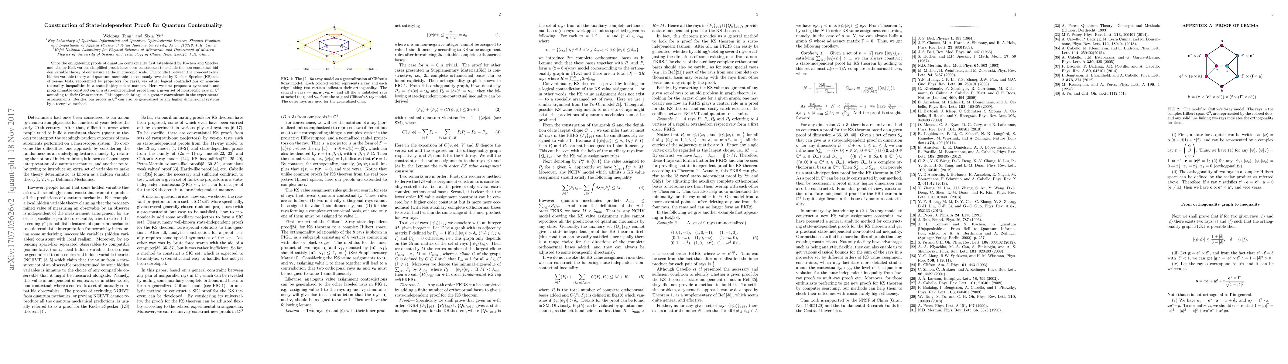 This paper proposes a systematic method to construct state-independent proofs of quantum contextuality from nonspecific rays in $\mC^3$ based on their Gram matrix, enhancing experimental arrangements and allowing generalization to higher dimensions.