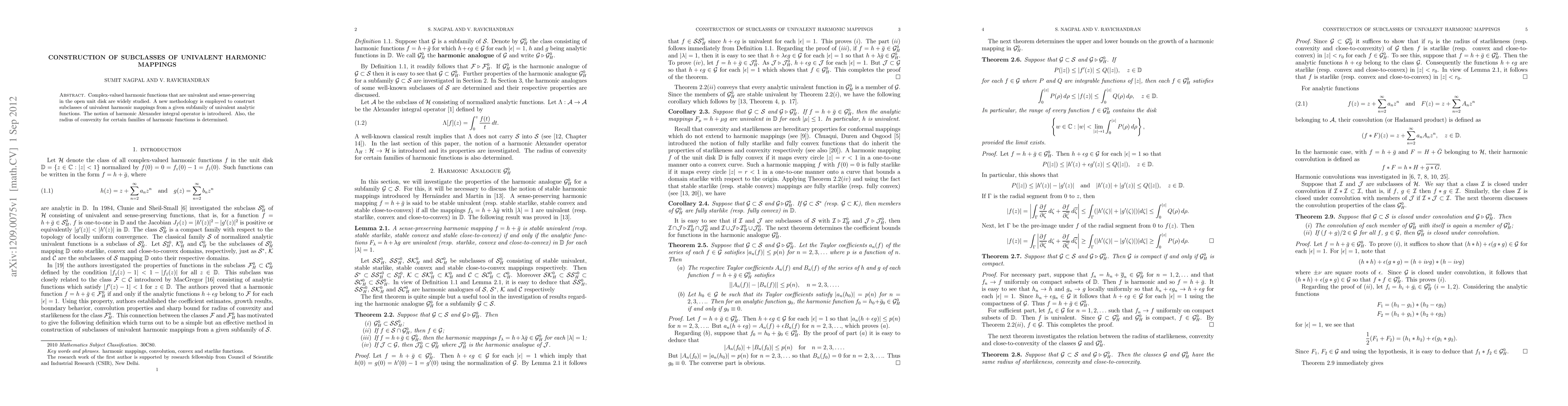 Complex-valued harmonic functions that are univalent and sense-preserving in the open unit disk are widely studied. A new methodology is employed to construct subclasses of univalent harmonic mappings from a given subfamily of univalent analytic functions. The notion of harmonic Alexander integral operator is introduced. Also, the radius of convexity for certain families of harmonic functions is determined.