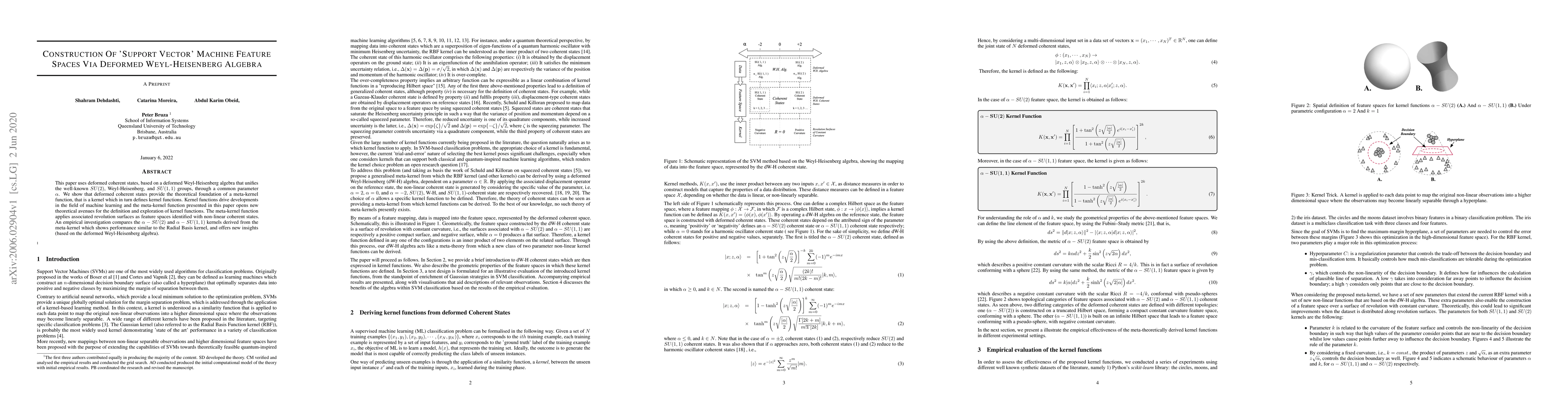 This paper constructs feature spaces for Support Vector Machines using deformed coherent states from a deformed Weyl-Heisenberg algebra, introducing a meta-kernel function that enhances kernel function exploration in machine learning. Empirical results show comparable performance to the Radial Basis kernel.
