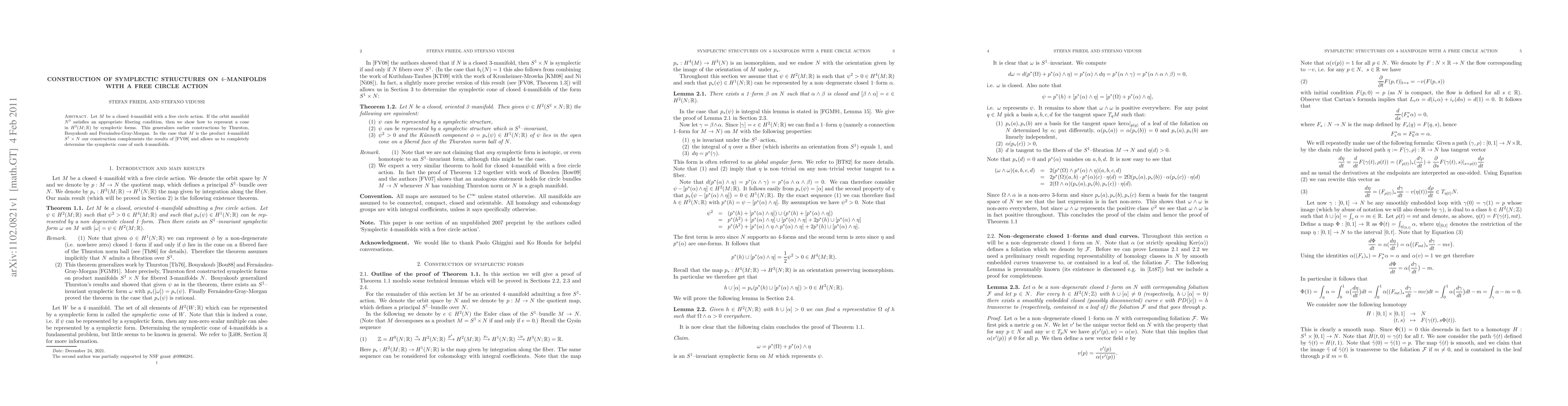 This paper constructs symplectic structures on closed 4-manifolds $M$ with a free circle action, showing how to represent a cone in $H^2(M;\R)$ using symplectic forms under specific fibering conditions on the orbit manifold $N^3$. The results generalize prior work and completely determine the symplectic cone for product 4-manifolds $S^1\times N$.