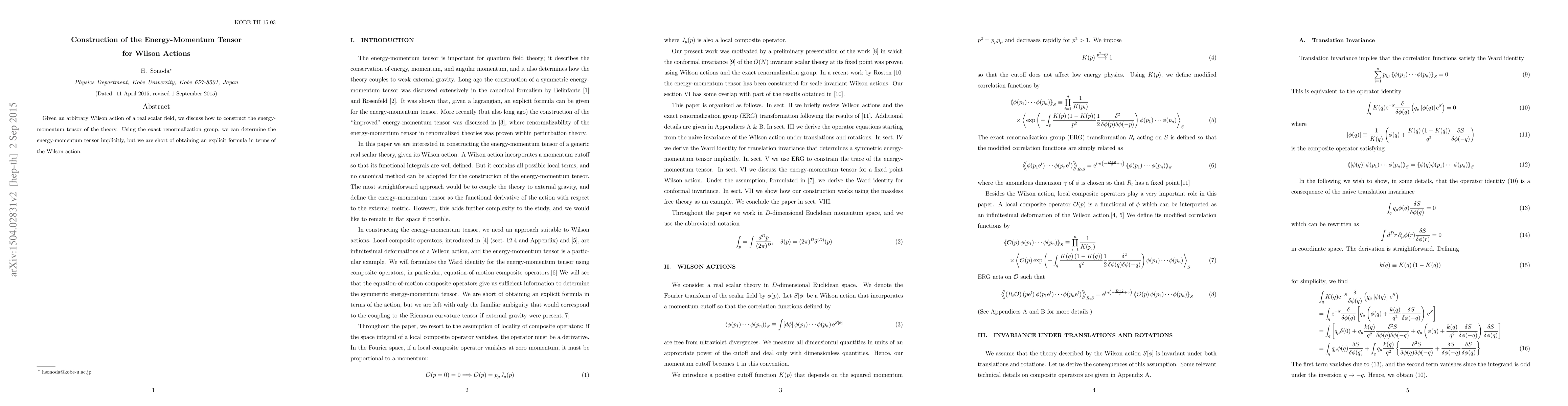 Summary: This paper explores the construction of the energy-momentum tensor for a real scalar field defined by an arbitrary Wilson action, utilizing the exact renormalization group to derive it implicitly, though an explicit formula remains elusive.