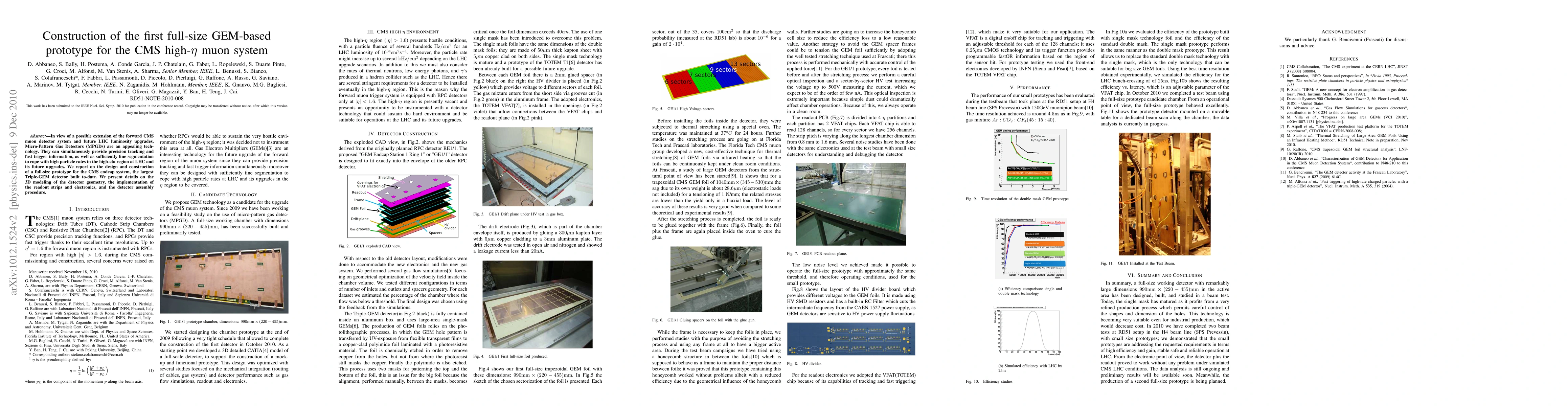 This paper details the construction of the first full-size prototype for the CMS high-$\eta$ muon system using Triple-GEM technology, designed to enhance precision tracking and fast trigger capabilities for future LHC upgrades. The report includes specifics on the detector geometry, readout strips, electronics, and assembly procedures.